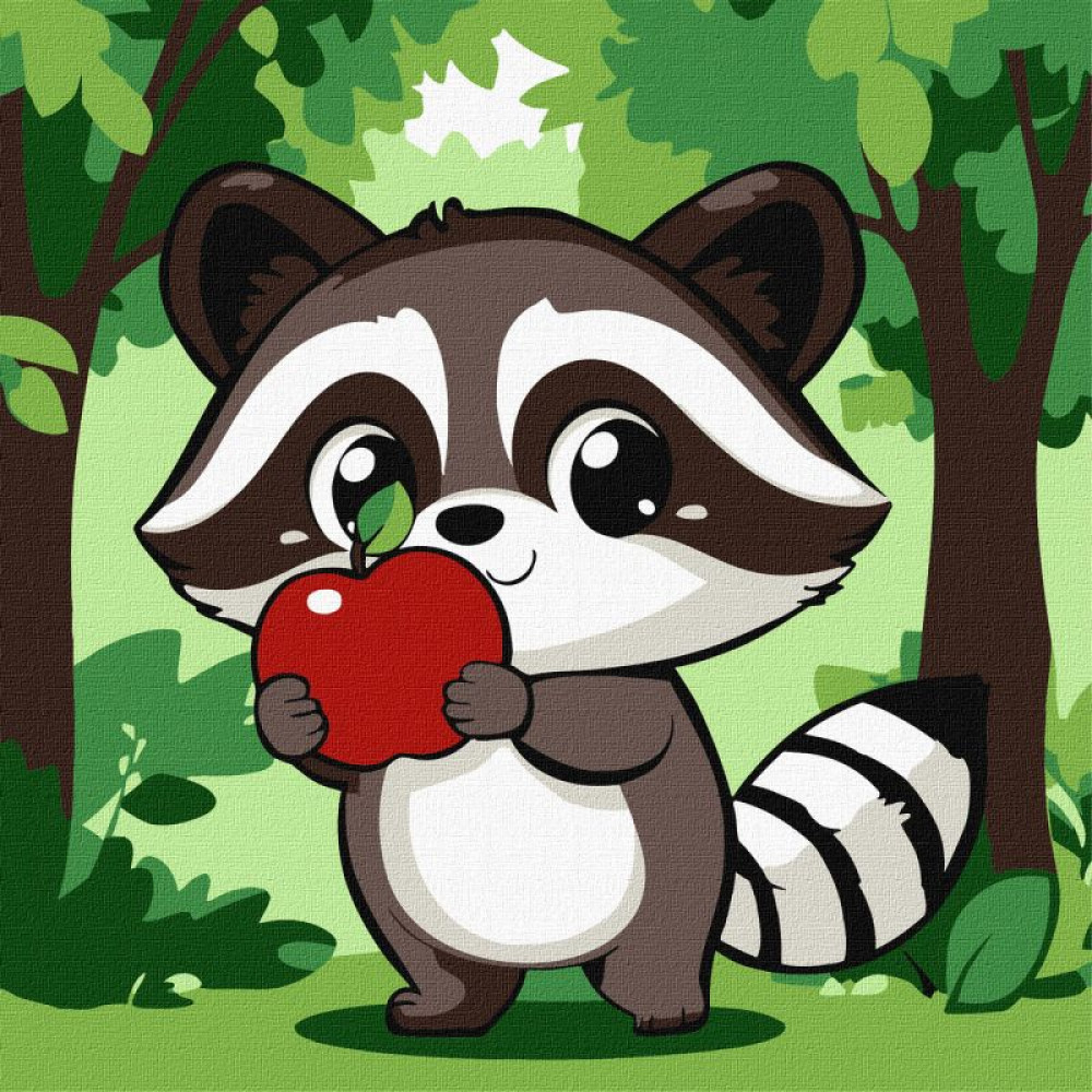 Картина за номерами - Милий єнот з яблучком ©art_selena_ua для вашої творчості. Зроблено в Україні.