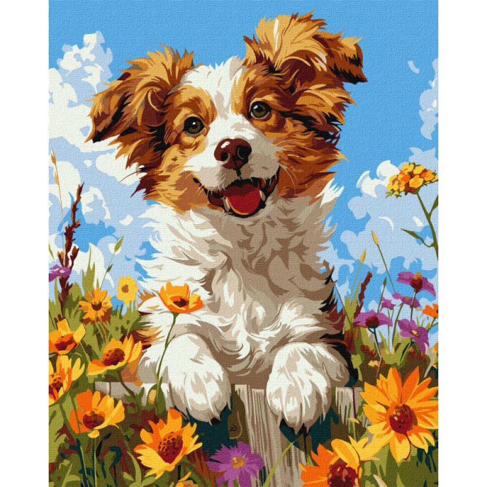 Картина за номерами - Собака у квітах ©art_selena_ua для вашої творчості. Зроблено в Україні.