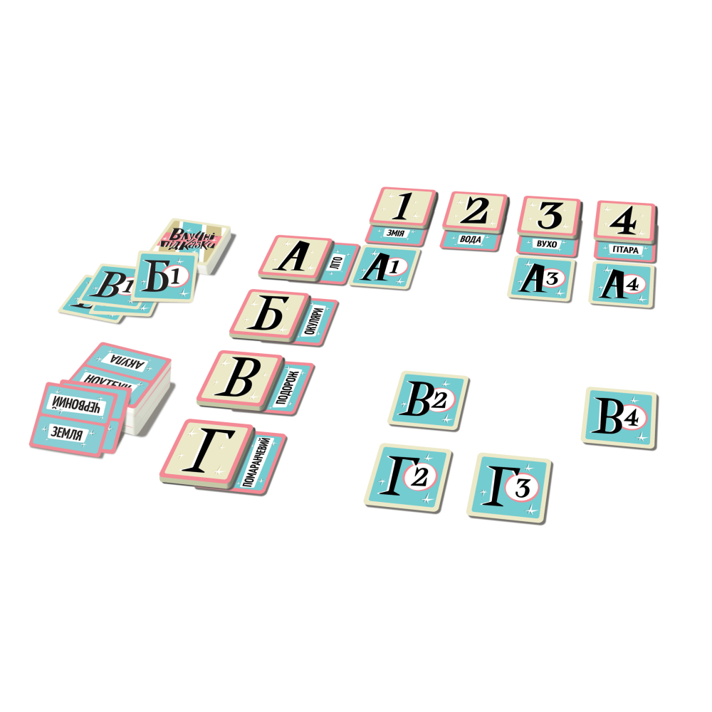 Кожен гравець повинен вигадати асоціацію до двох слів що йому випали у карті підказки.