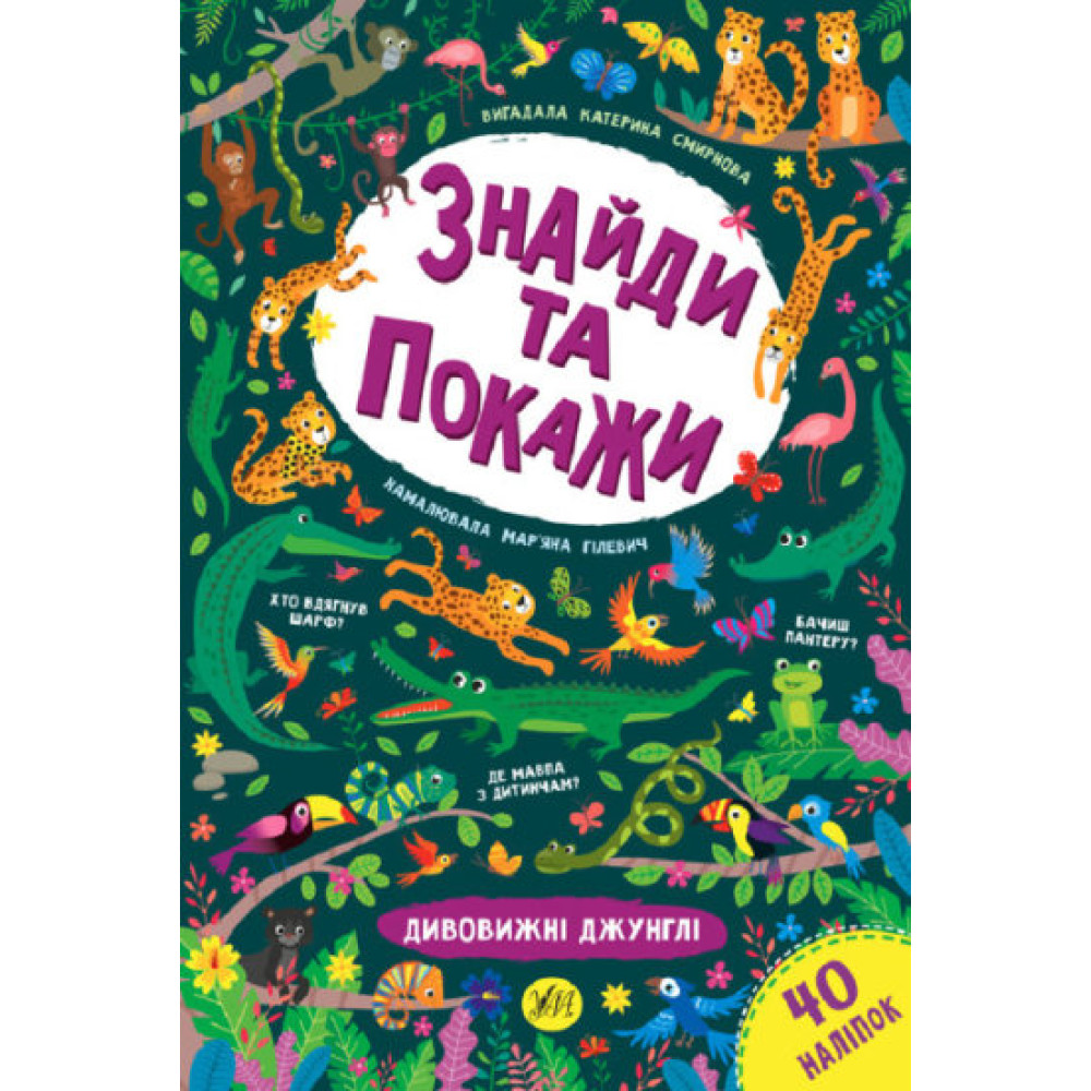 Це видання познайомить дитину з дивовижним світом джунглів. Виконуючи завдання, маленький розумник розвине уяву, потренує пам’ять та увагу, навчиться міркувати, творчо підходити до вирішення різних завдань і зможе відчути себе справжнім слідопитом! Кожен розворот книжки містить велику барвисту ілюстрацію з безліччю різноманітних кумедних персонажів і запитання, що підкажуть, які несподіванки потрібно шукати на картинці.