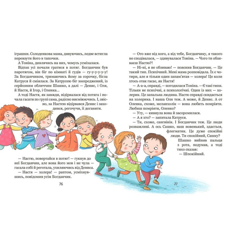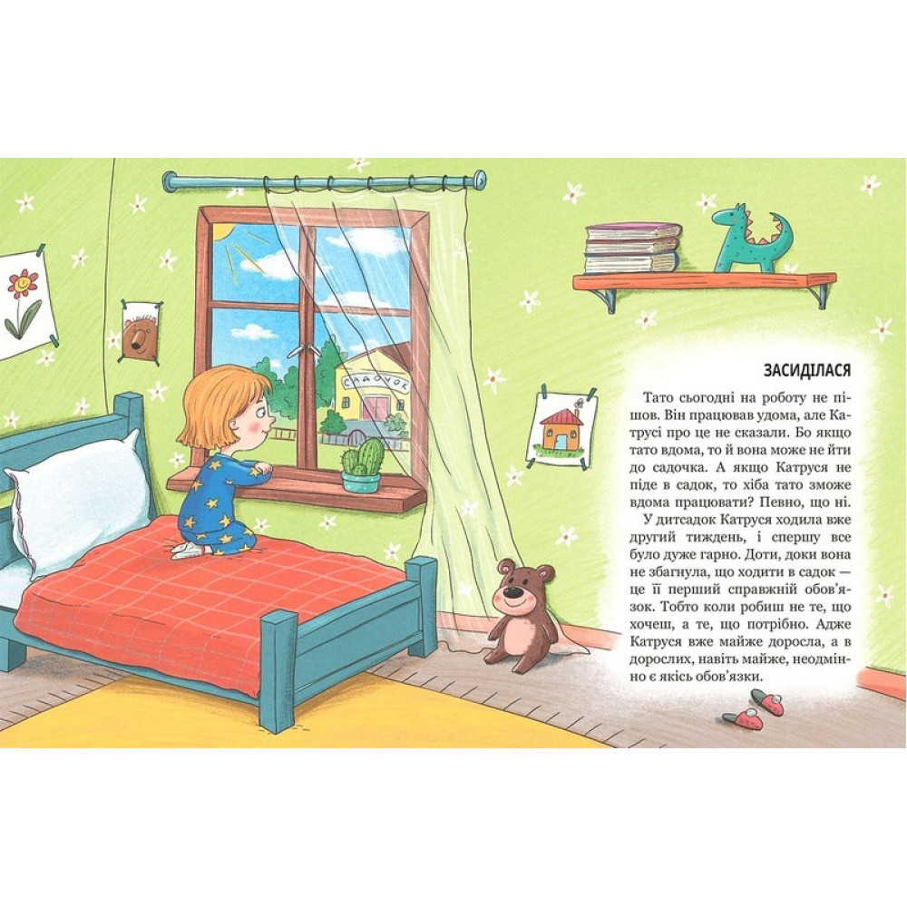 Трирічна Катруся вперше йде до дитячого садочка. Їй дуже цікаво: адже там багатодіточок, із якими можна погратися досхочу. Та коли відвідування садочка стає справжнімобов’язком, коли трапляються перші розчарування, прикрощі, капості й навіть конфлікти —тоді треба вперше в житті показати характер і нікому не дозволити «плювати собі в кашу»… Обов’язково прочитайте своєму дошкільняткові цю книжку, в якій напрочуд легко,правдиво й весело оповідається про перші кроки в дитячому садку, про труднощі й радощідитячих взаємин. Для читання дорослими дітям дошкільного віку.