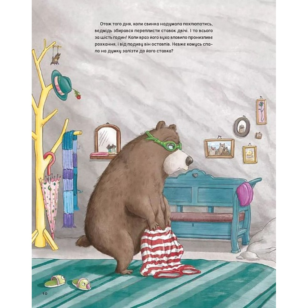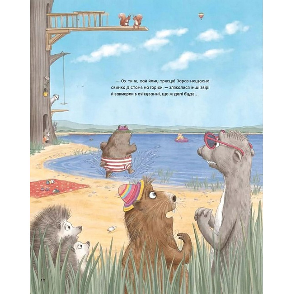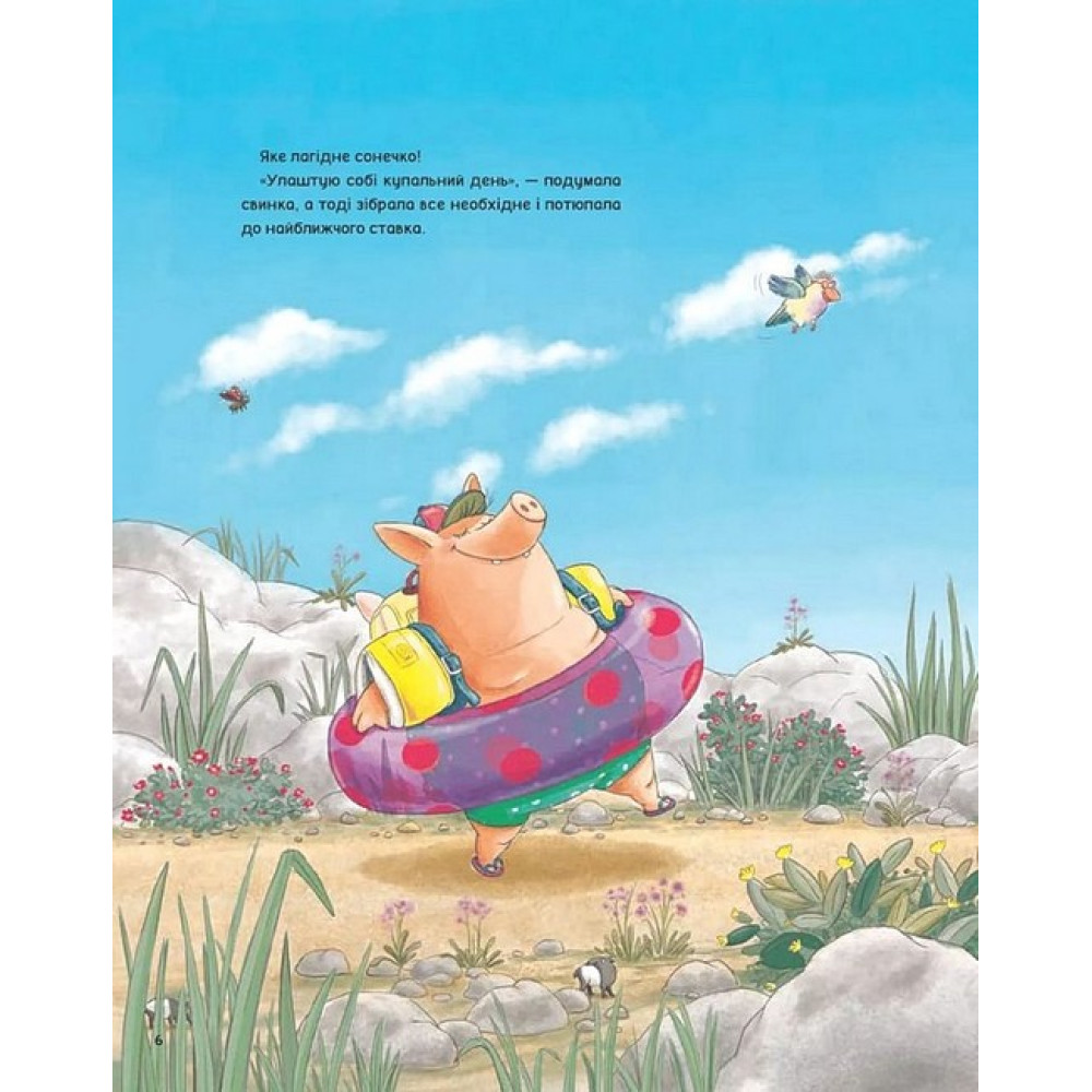 Чудового літнього дня свинка вирішила поплюскатися: у неї є круг для плавання та по вінця гарного настрою. Проте біля ставка на неї чекають неприємності: ведмідь готується до чемпіонату з плавання і дуже сердиться, коли хтось заважає.Але свинка нікому не дозволить диктувати їй, що робити! Чим же закінчиться суперечка двох сильних особистостей?Свинка вирішила пограти з друзями в хованки, але застрягла в стовбурі дерева. Тваринки намагаються її визволити, проте все марно. Навіть дужий ведмідь не в змозі допомогти.Раптом у свинки виникла ідея. Гороховий суп! Друзі не можуть зрозуміти, нащо їй зараз їсти. Чи не застрягне вона ще більше? Але план свинки має приголомшливий успіх, і всі можуть лише спостерігати за її карколомним… польотом!