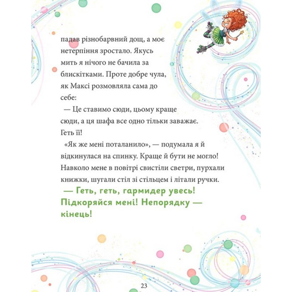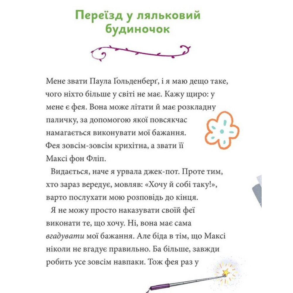 Час вирушити в наступну пригоду з Максі фон Фліп — феєю бажань!От тільки вона зникла! Тепер Паулі доведеться просити в суворих Верховних фей допомоги з пошуками.Як це сталося?Одного дня невгамовна Максі знайшла в крамниці батька Паули старовинну модель корабля. Вітрильник саме такого розміру, щоб ним могла керувати крихітна фея! А ще в ньому була таємнича скриня, яка нагадала Максі про її рідний світ. Як же цікаво дізнатися, що ж там всередині… Але скринею цікавиться не лише Максі!