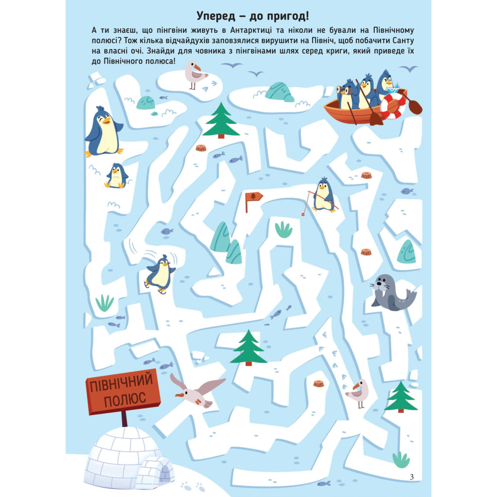В цій книзі зібрані найцікавіші лабіринти про Новий рік та Різдво! Підказати Санті правильний шлях чи допомогти ельфам з підготовкою до Різдва? Знайти загублені речі та врятувати свято? Легко! Аж 20 лабіринтів чекають на малечу у цій книжці. Вони допоможуть дитині поринути в чарівну атмосферу свята, цікаво провести час та розвинути увагу і логіку.