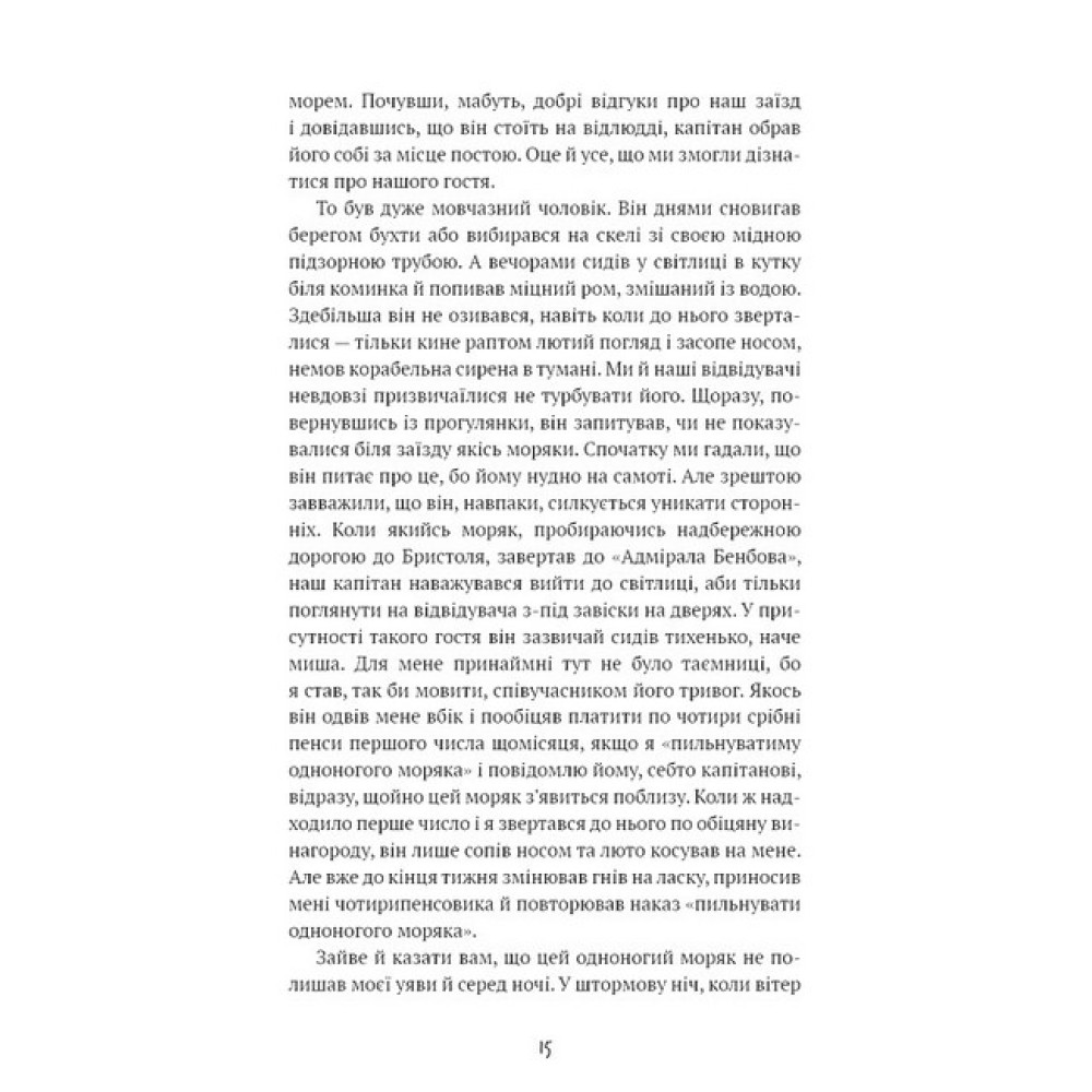 Таємнича карта, безлюдний острів, захопливий пошук скарбів, смертельні сутички з піратами — у всесвітньо відомому романі Роберта Луїса Стівенсона є все, що потрібно справжнім поціновувачам морських пригод. Юний Джим Гокінс, капітан Смоллетт, сквайр Трелоні, лікар Лівсі та власник таверни «Підзорна Труба» Джон Сільвер разом із командою вирушають у ризиковану експедицію. Маючи цінну карту, вони прагнуть потрапити на безлюдний острів, де заховані скарби легендарного пірата Флінта. Але під час подорожі з’ясовується, що частина команди з піратським минулим замислила недобре. Щоб зберегти собі життя та врешті знайти заповітний скарб, Джиму та його друзям доведеться виявити неабияку кмітливість і навіть узяти до рук зброю.