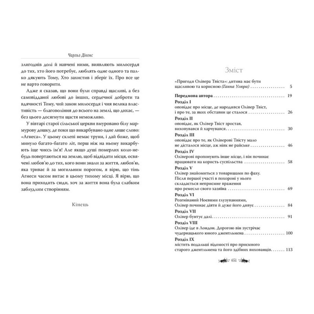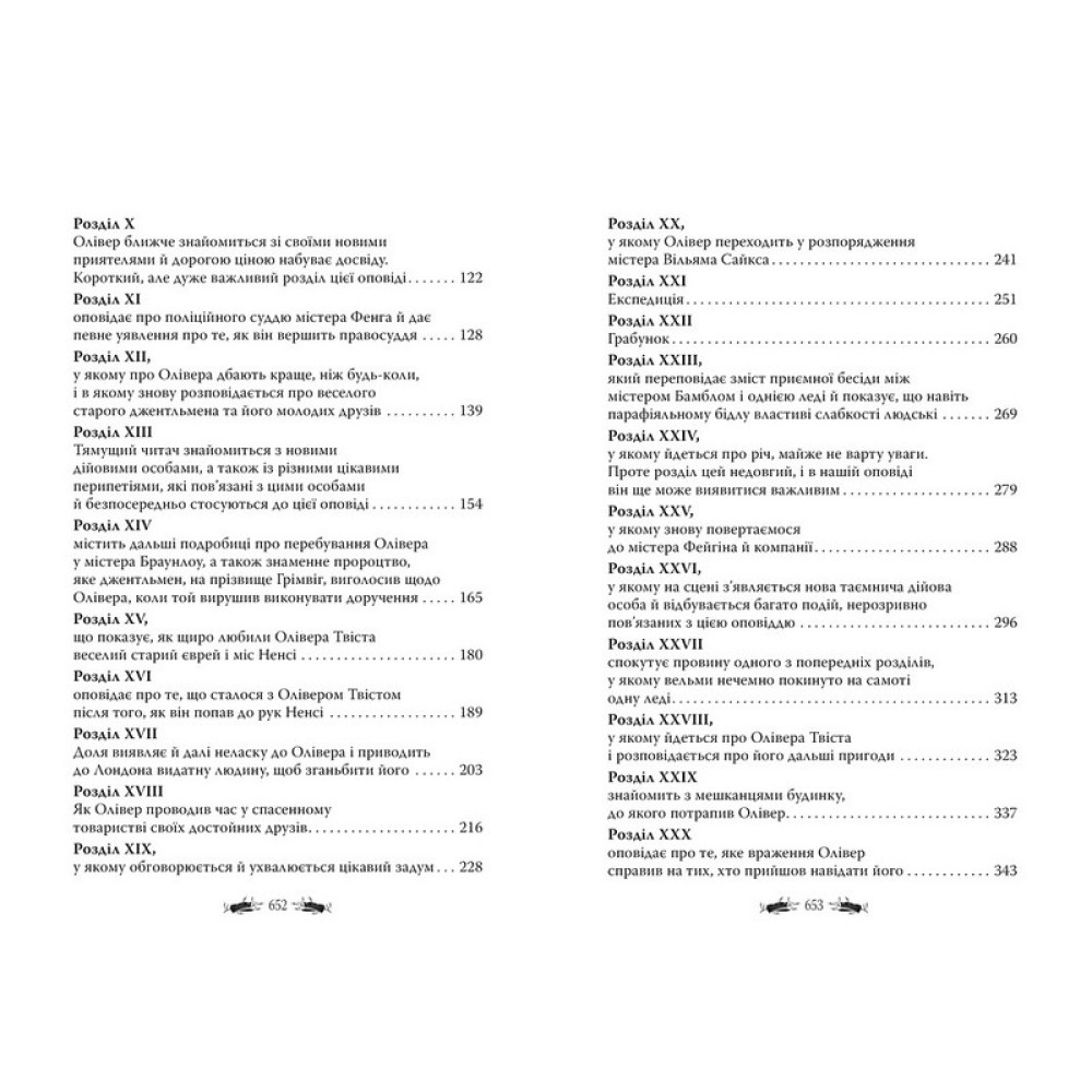 Твір класика англійської літератури Чарльза Дікенса (1812–1870) розповідає про злигодні та поневіряння маленького сироти Олівера Твіста, який виріс у притулку для бідних (так званому робітному домі). Утікши звідти, Олівер потрапляє в лондонські нетрі, де його, як і інших безпритульних, навчають злодійського ремесла. Щаслива розв’язка — Олівера рятує «ідеальний джентльмен», містер Браунлоу, — підтверджує оптимістичну впевненість письменника в перемозі людяності й добра над злом і несправедливістю.