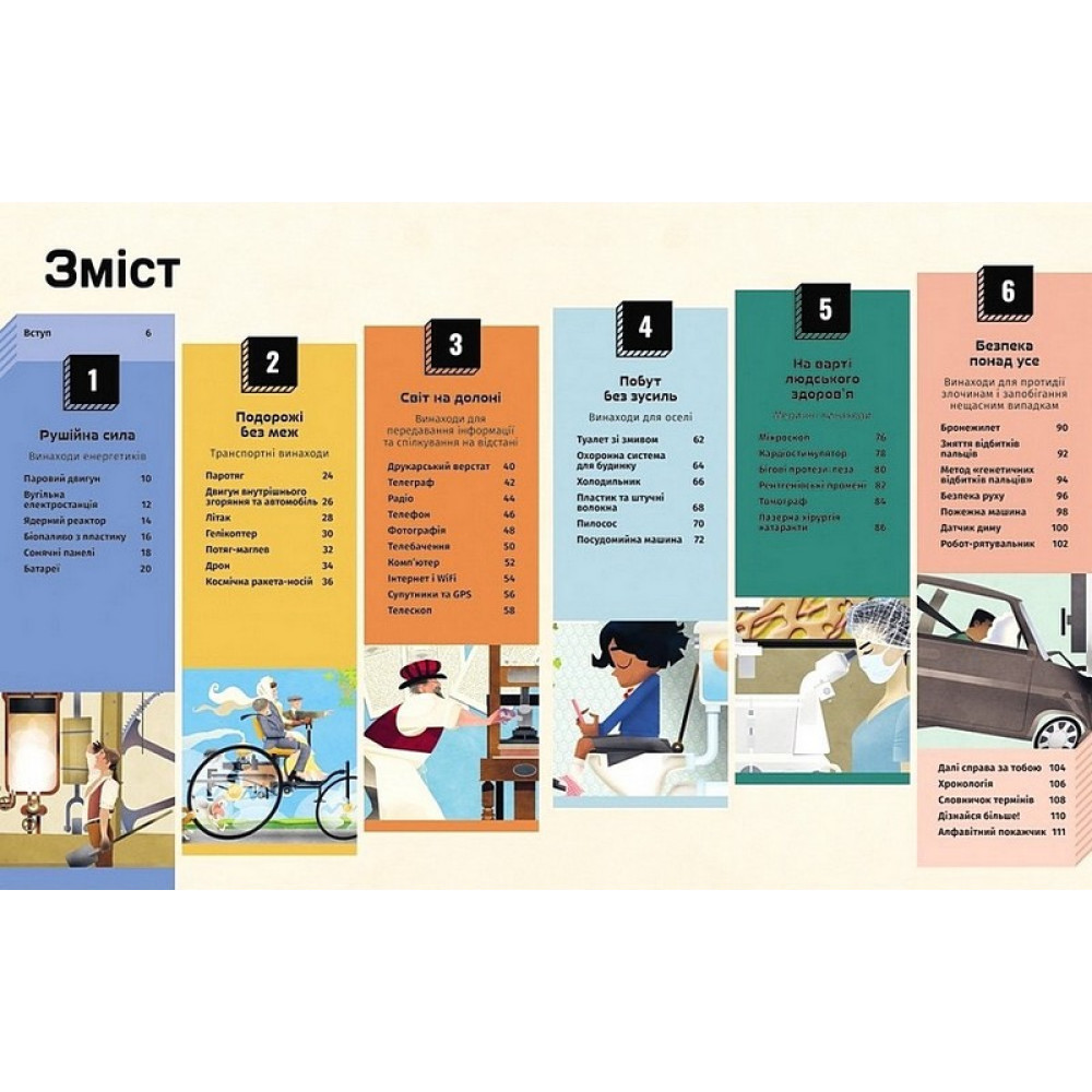 Винаходи мають здатність змінювати наше життя. На маленьких читачів чекають понад 40 найвизначніших досягнень у науці й техніці за всю історію людства — від унітазів до біопалива, від мікроскопів до томографів.Дізнайтеся, як, коли й чому з’явилися винаходи, які сьогодні стали буденними для всіх! Гортайте сторінки цього захопливого путівника світом технологій і гаджетів, які рухають цивілізацію уперед, і познайомтеся з їхніми винахідниками — як добре знаними, так і маловідомими.