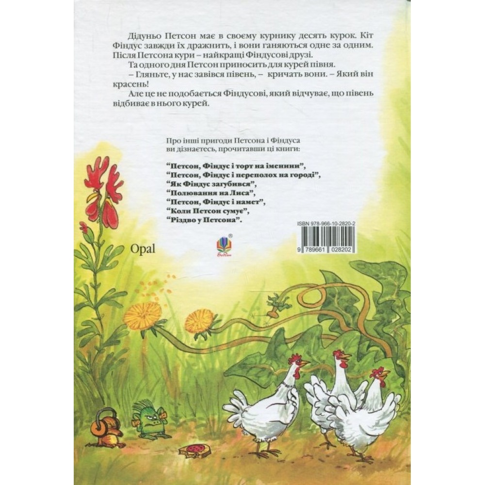 Дідуньо Петсон має в своєму курнику десять курок. Кіт Фіндус завжди їх дражнить, і вони ганяються одне за одним. Після Петсона кури — найкращі Фіндусові друзі. Та одного дня Петсон приносить для курей півня. — Гляньте, у нас завівся півень, — кричать вони. — Який він красень! Але це не подобається Фіндусові, який відчуває, що півень відбиває в нього курей.