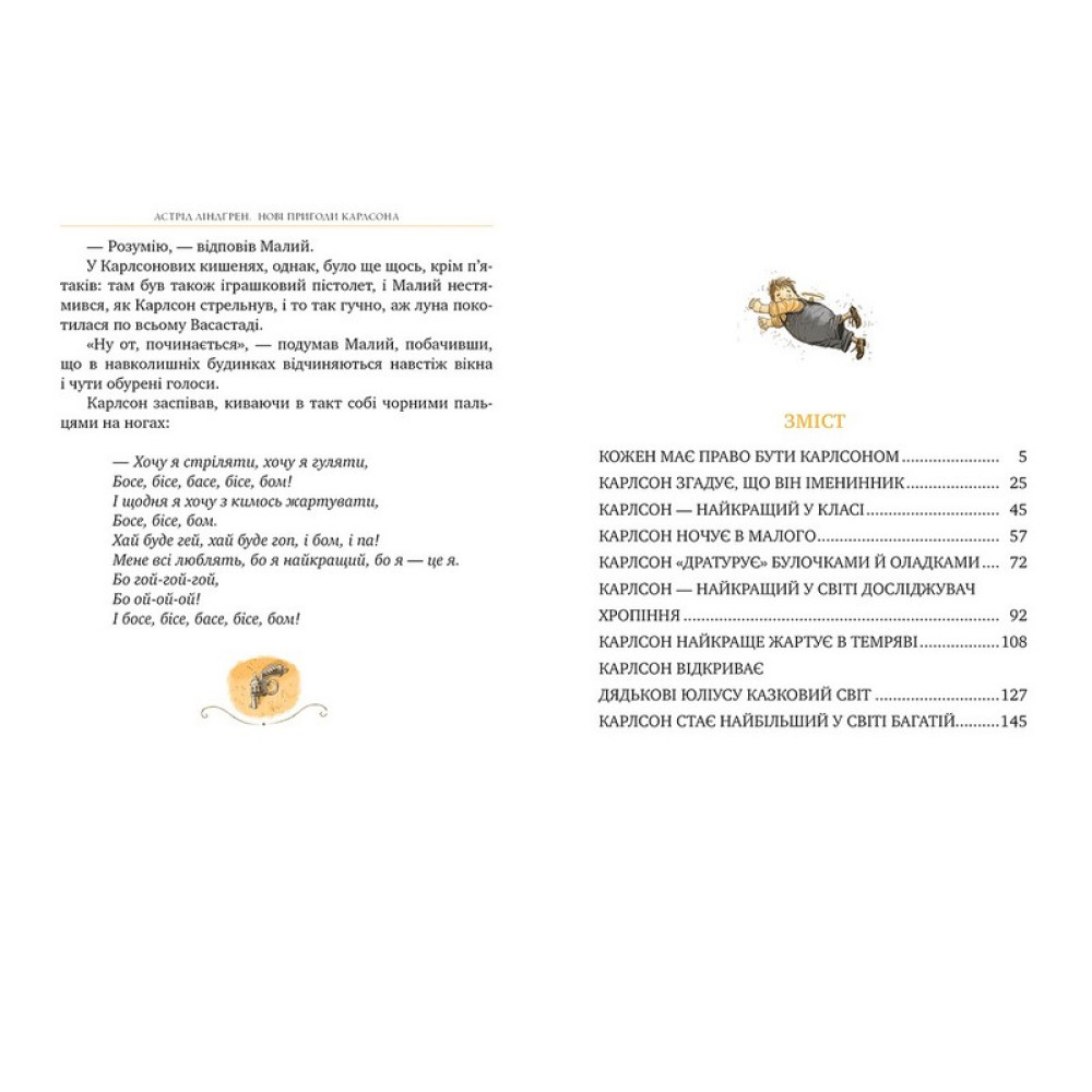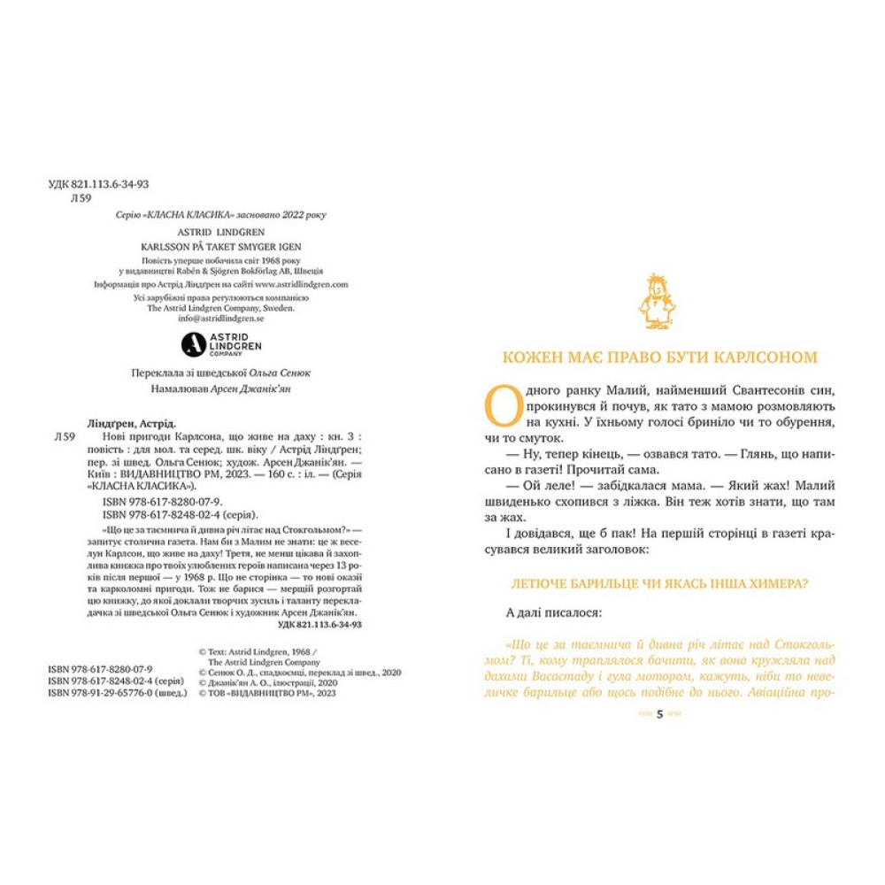«Що це за таємнича й дивна річ літає над Стокгольмом?», — запитує столична газета. Нам би з Малим не знати: це наш герой Карлсон, що живе на даху! «Нові пригоди Карлсона, що живе на даху» — так називається третя книжка про твоїх улюблених героїв, написана через 13 років (1968) після першої. Що не сторінка — то нові оказії. Тож не барися, поринай у читання.До серії «Малий та Карлсон» входять:«Малий та Карлсон, що живе на даху»«Карлсон прилітає знов»«Нові пригоди Карлсона, що живе на даху»