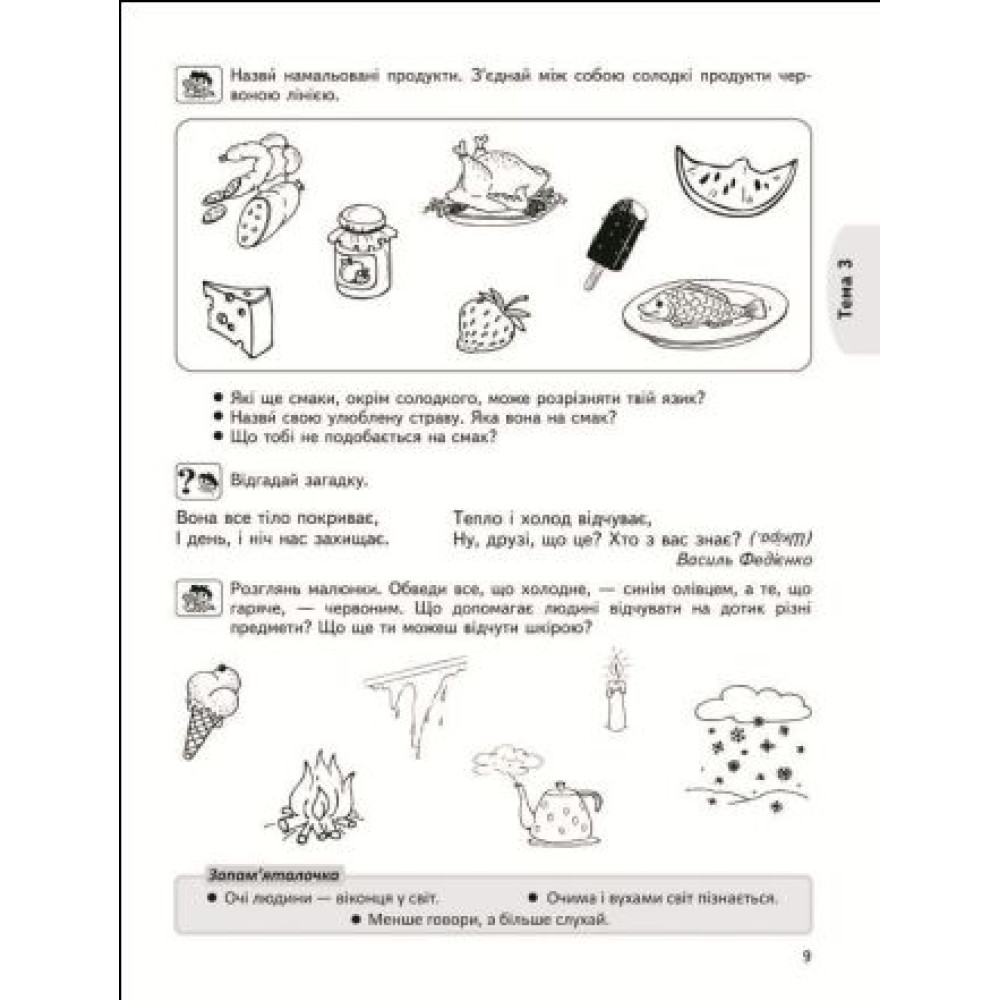Працюючи за цим зошитом, дитина сформує позитивне ставлення до себе, розширить елементарні уявлення про будову тіла, здобуде елементарні навички особистої гігієни, розширить уявлення про предметне довкілля, здобуде знання про сім’ю та рідний край, про доброту, чуйність, товариськість, людяність.