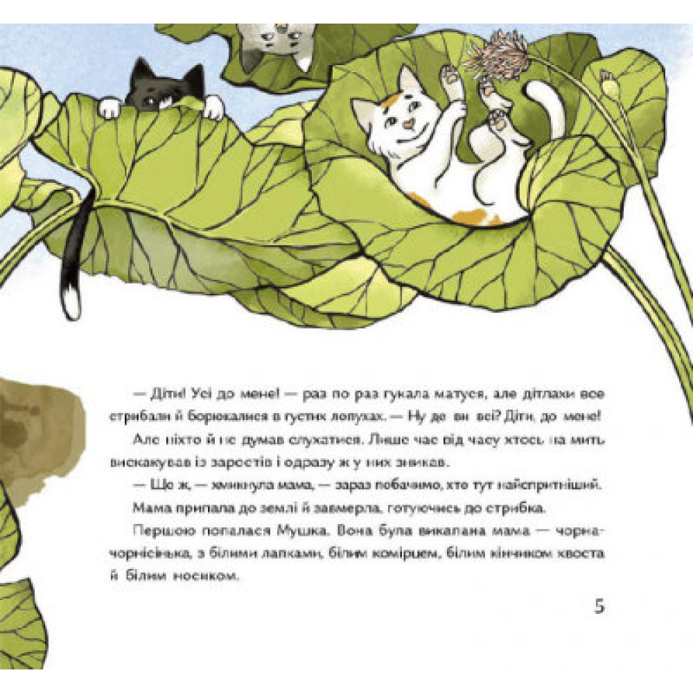 Це динамічна та зворушлива розповідь-мандрівка Києвом часів Київської Русі у компанії восьми кошенят та їхньої мами-кішки. Читачі вирушать від околиць річки Почайни, помандрують вздовж її берега до місцевості, що має назву Гончарі-Кожум’яки, й завершать прогулянку біля княжого палацу — Золотих воріт. Так діти не лише пізнають середньовічний Київ та його колорит, а також дізнаються, які професії побутували в той час. Стоїть над Дніпром давньоруський Київ із передмістями, а в ньому вирує життя.