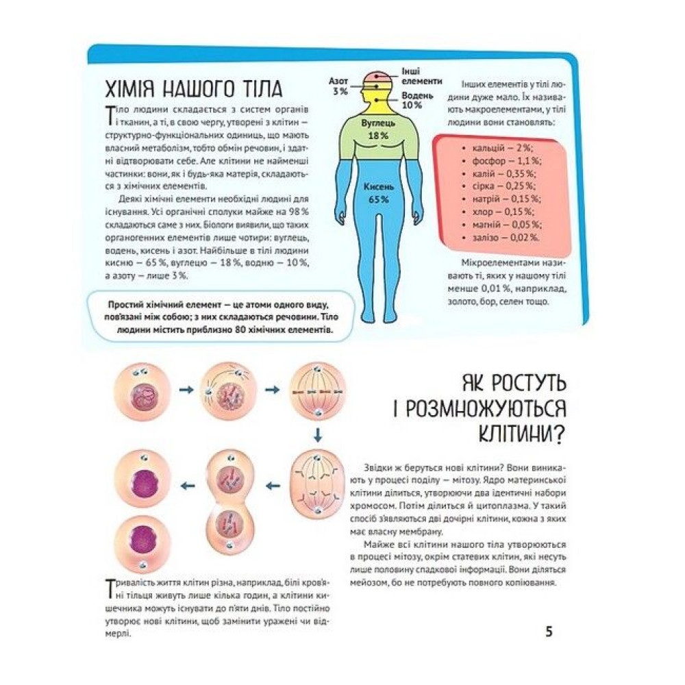 Ця ілюстрована енциклопедія відкриє юним читачам найцікавіші таємниці людського тіла:Що таке ДНК і гени?Навіщо людині їсти та пити?Де зберігається пам'ять?Що таке рефлекси?Як ми отримуємо інформацію зовні?Та багато іншого. Наповнена важливими фактами, докладними схемами і приголомшливими фотографіями, ця книжка досліджує злагоджену роботу найцікавішого механізму, який лише існував у Всесвіті.