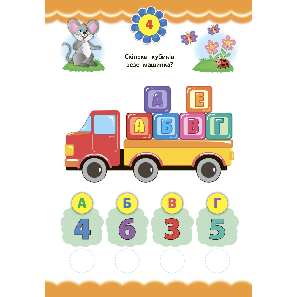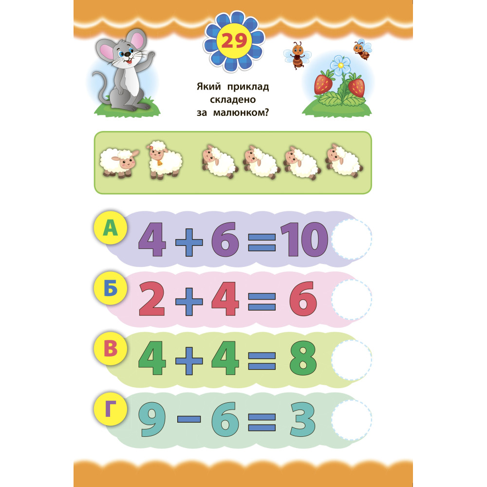 Книжка містить тестові завдання з математики, які допоможуть визначити рівень підготовки майбутнього першокласника. Увесь матеріал запропоновано в простій і зрозумілій тестовій формі, наявні яскраві ілюстрації та кольорові наліпки, також є перевірочна таблиця та відповіді. Опрацювавши книжку разом з малюком, ви зможете зрозуміти, на скільки дитина готова самостійно здобувати знання в школі.