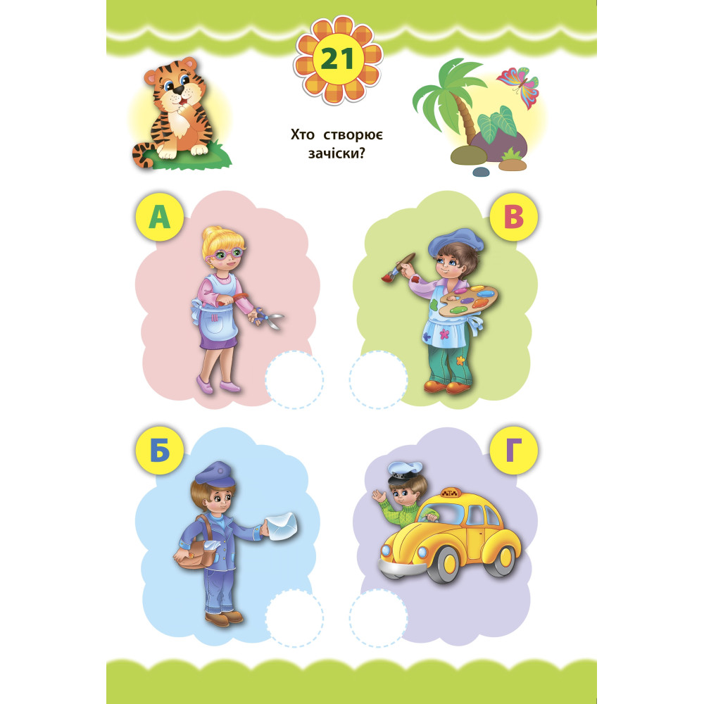 Книжка містить тестові завдання, які допоможуть визначити рівень загальної підготовки та обізнаності майбутнього першокласника. Увесь матеріал запропоновано в простій і зрозумілій тестовій формі, наявні яскраві ілюстрації та кольорові наліпки, також є перевірочна таблиця та відповіді. Опрацювавши книжку разом з малюком, ви зможете зрозуміти, на скільки дитина готова самостійно здобувати знання в школі.