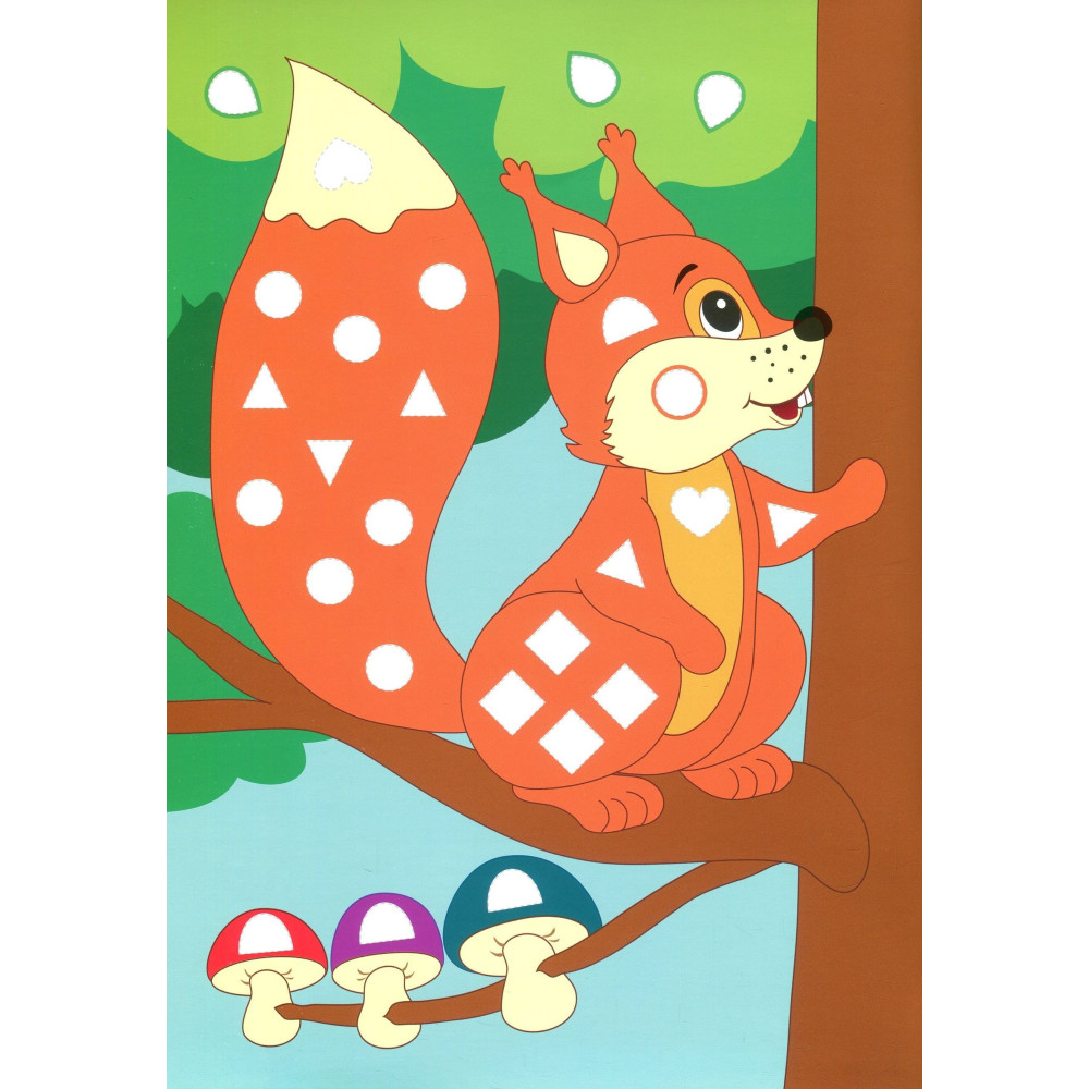 Це видання не залишить байдужим жодного малюка, адже містить великі яскраві ілюстрації та безліч кольорових наліпок, якими дитина зможе прикрасити сторінки на свій смак. Працюючи з книгою, малюк познайомиться з лісовими тваринами, а також розвине дрібну моторику, творчі здібності, фантазію та акуратність.