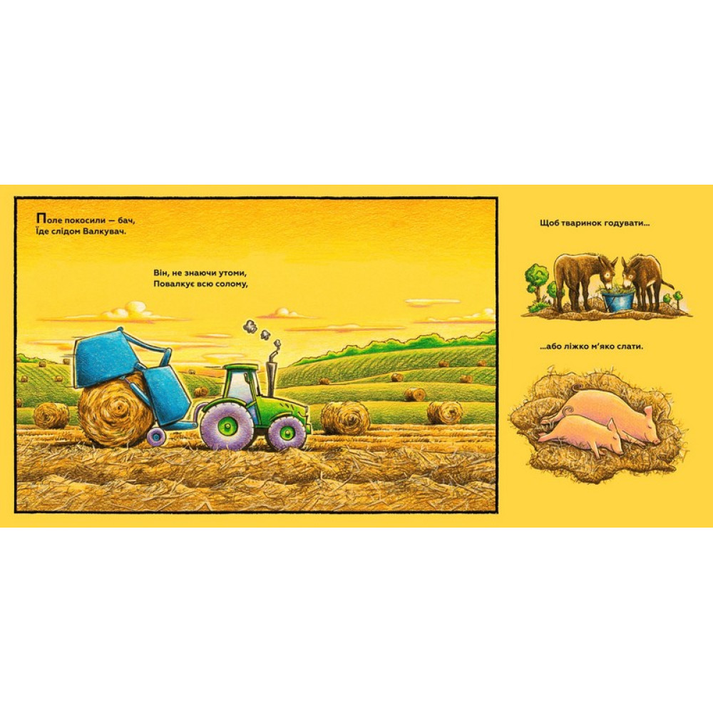 До праці! Не можна гаяти ні хвилини! На фермі весь рік є що робити! Шість працьовитих машин разом із друзями з ферми сумлінно трудяться будь-якої пори року. Навесні сіють зерно, влітку зводять хлів, восени збирають урожай і насамкінець узимку готують звірятам теплий прихисток. Любителі будівництва будуть у захваті від нагоди зануритися у сільське життя, де вирує щоденна праця — важка, але така цікава! Чому варто придбати: ·Грайливі римовані рядки і жваві ілюстрації знайомлять малюків з новою історією про командну працю, яка припаде до смаку навіть найвигадливішим юним будівельникам по всьому світу. ·На фермі стільки роботи, що вистачить усій будівельній бригаді! На малят чекає зустріч з усіма працьовитими машинами із улюбленої серії про будівництво. ·На сторінках цієї книжки весело і цікаво спостерігати, як поступово змінюються пори роки. Дізнавайтеся, коли і яку роботу на фермі виконує кожна з машинок.