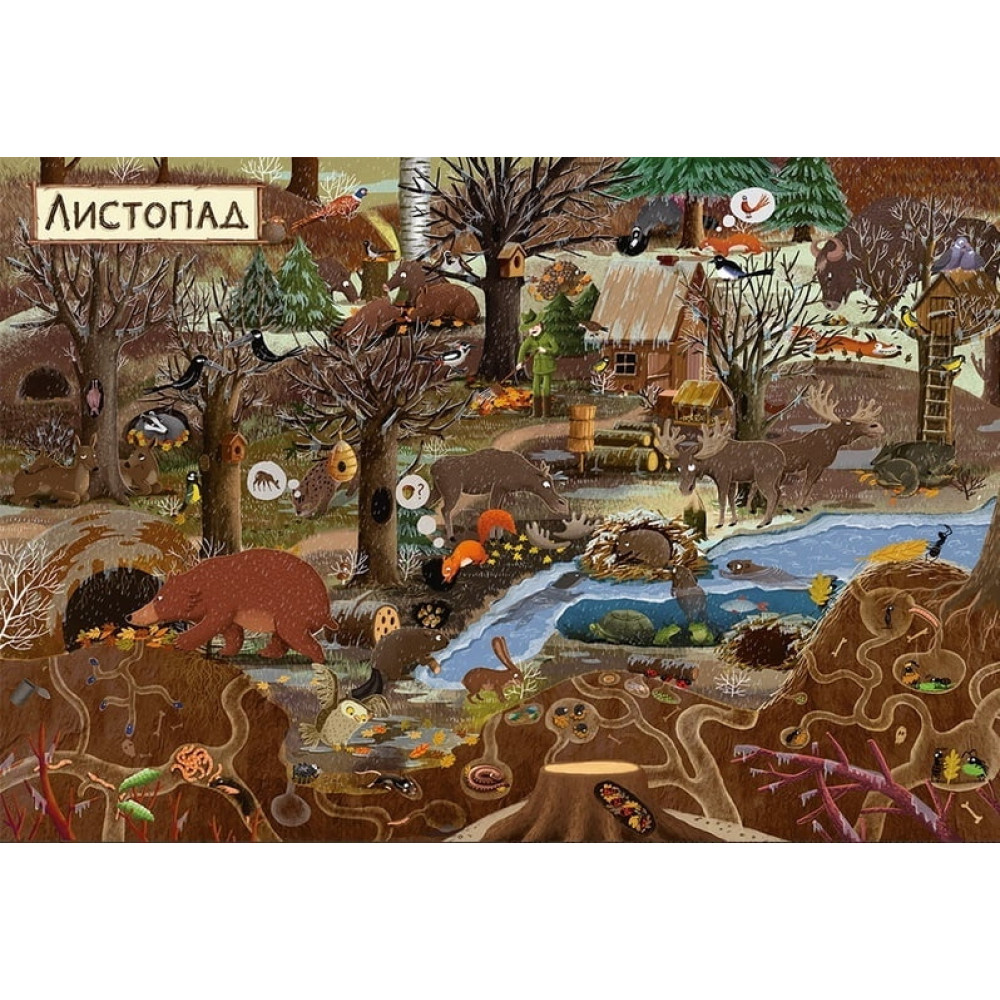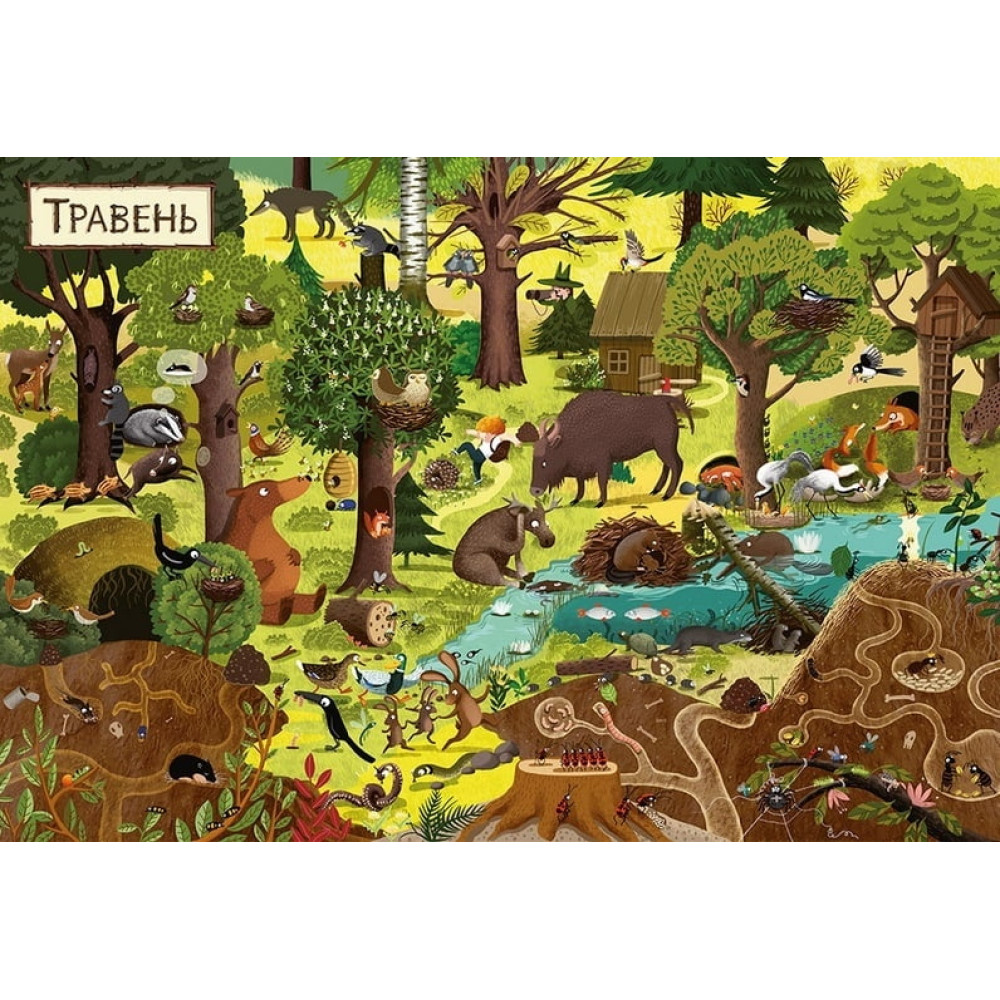 «Рік у лісі» - незвичайна та оригінальна, «жива» книга про природу и тварин, які мешкають у лісі.На початку книги «Рік у лісі» ви знайдете короткі змістовні повідомлення про всіх мешканців лісових хащів. Дванадцять розворотів цієї дивовижної книги відповідають дванадцятьом місяцям року. З яскравих сторінок книги ви дізнаєтеся про природу та поведінку звірів, птахів та комах відповідно до пори року. Аналізуючи поведінку тварин відповідно до часу доби, дати розвивають логічне мислення, а вивчення відмінностей в порівнянні з кожною наступною сторінкою стимулює спостережливість та виробляє вміння знаходити причинно-наслідкові зв’язки. «Рік у лісі» це прекрасній спосіб у цікавій формі дізнатися більше про світ, який нас оточує. Діти дізнаються, як різні тварини готуються до зими, як, в залежності від місяця року, змінюється поведінка всього живого у лісі, хто які робить запаси на зиму, як лісник підтримує порядок у своєму господарстві та допомагає звіряткам, як численні мешканці співіснують в своїй екосистемі та багато іншого. В кінці книги «Рік у лісі» ви знайдете хитромудрий лабіринт. Кмітливі хлопчики й дівчатка захочуть допомогти тваринкам та комахам дістатися до потрібної їм мети та уникнути небезпеки.