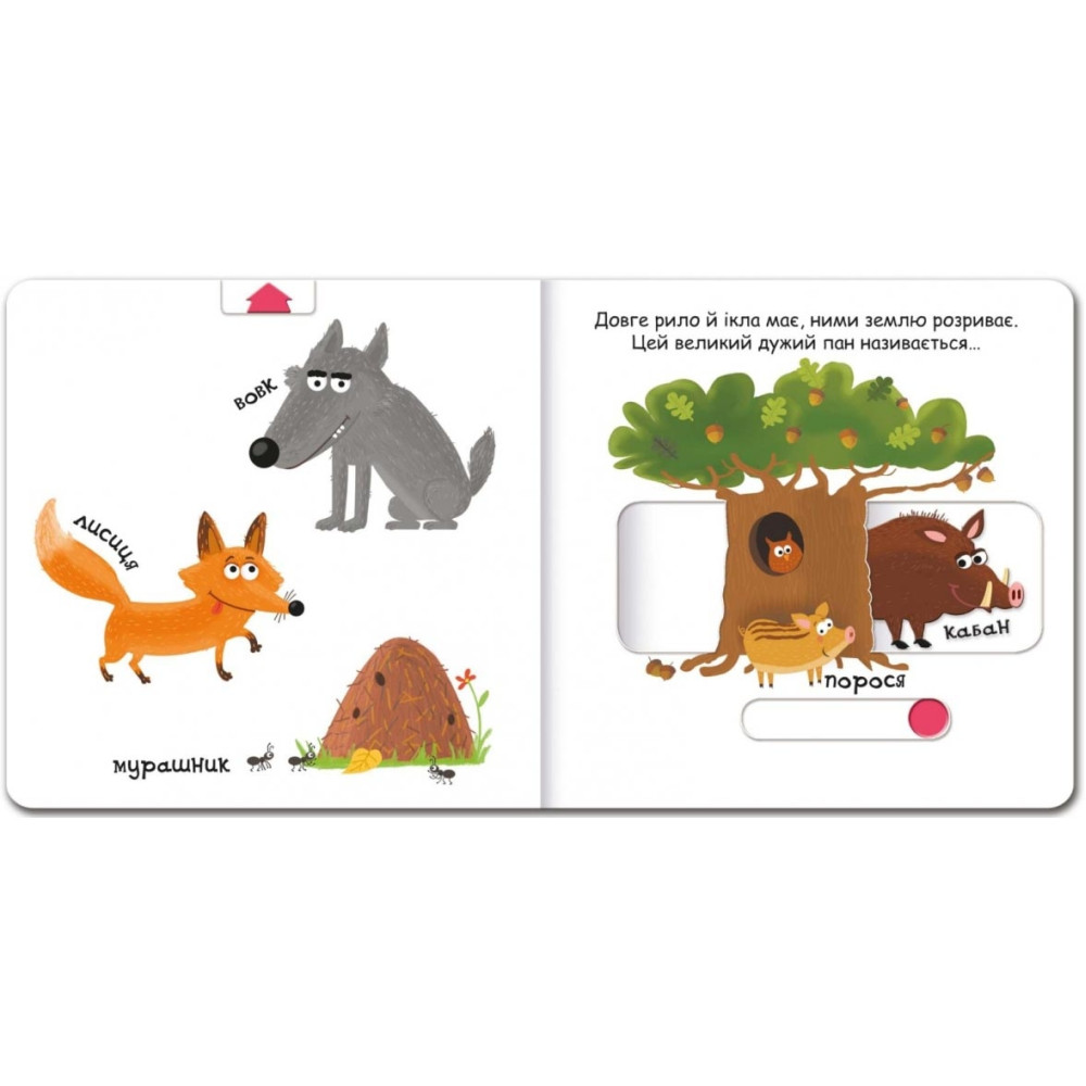 Книжка знайомить із лісовими тваринами, намальованими на кожній сторінці. А про деяких розповідає так, що треба виявити кмітливість і здогадатися, про кого йде мова, і аж потім побачити цього «героя».