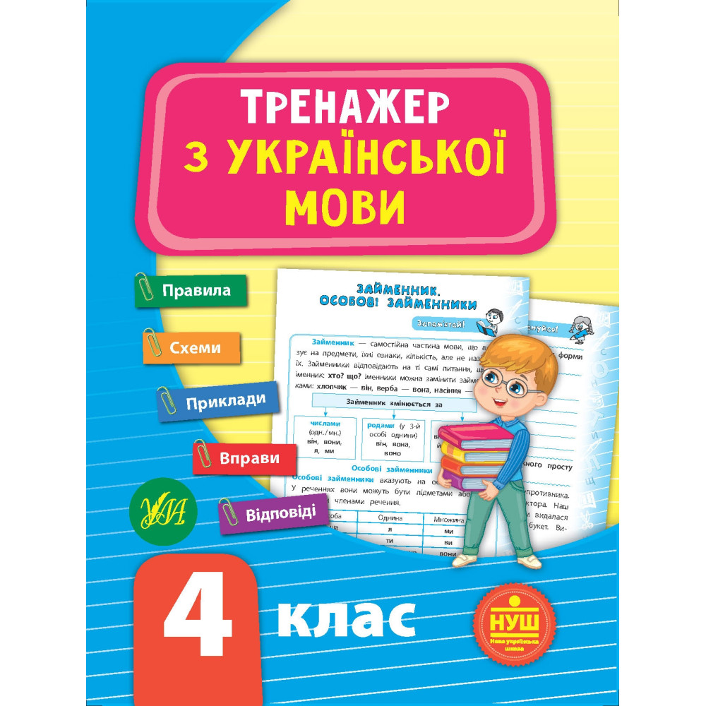Тренажер з української мови охоплює базовий матеріал 4 класу та відповідає вимогам освітніх програм гуманітарної галузі Нової української школи. Систематизована теорія та підібраний практичний матеріал допоможуть закріпити знання й уміння з кожної теми, виробити компетентності та добре підготуватися до контрольних робіт. Видання стане незамінним помічником для учнів 4 класу, їхніх батьків і вчителів.