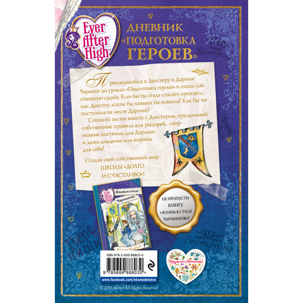 Присоединяйся к Декстеру и Дарлинг Чарминг на уроках Подготовки героев и пиши собственную судьбу. Если бы ты стала спасать принцесс, как Декстер, какие бы навыки ты освоила? Как бы ты поступила на месте Дарлинг? Сочиняй песни вместе с Декстером, придумывай собственные правила для рыцарей, спортивные костюмы для Дарлинг и даже диадемы или короны для себя! Создай свой собственный мир Школы "Долго и счастливо"!