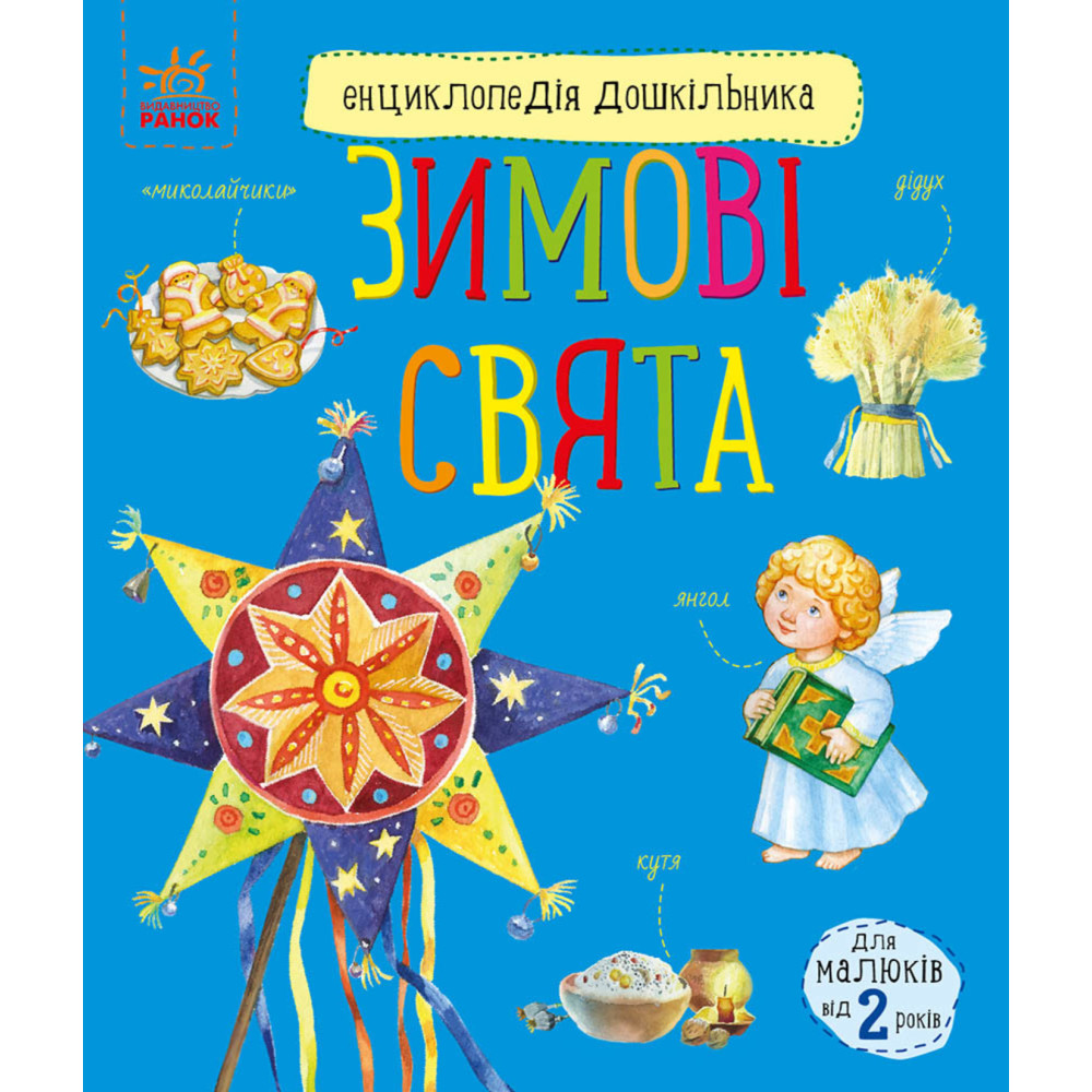 Гадаєте, що вашому синові чи донечці ще зарано знайомитися з енциклопедіями? Якщо малюкові вже є два роки — саме час! Роздивляйтеся разом малюнки, читайте тексти та дізнавайтеся нове про улюблені зимові свята, різдвяних персонажів, традиції святкування у нашій та деяких інших країнах. Книжка допоможе маленькому любомудрикові зрозуміти, що ж це за свята — День святого Миколая, Різдво, Маланки, Василя, Водохреща, запам’ятати нові слова, вивчити зимові пісеньки