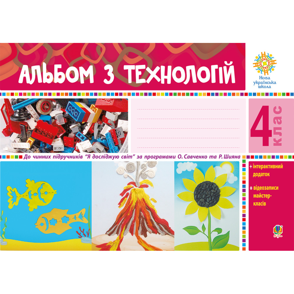 Альбом містить завдання, спрямовані на формування навичок самостійного творення художніх образів із різноманітних матеріалів, розвиток творчих здібностей четвертокласників, їхньої уяви і фантазії. Завантаживши інтерактивний додаток, діти зможуть переглянути відеозаписи майстер-класів з виконання практичних завдань, а також роздрукувати необхідні для роботи заготовки. Посібник відповідає Державному стандарту початкової освіти, Типовим освітнім програмам та чинним підручника. Для учнів 4-го класу, їхніх дбайливих батьків і вчителів.