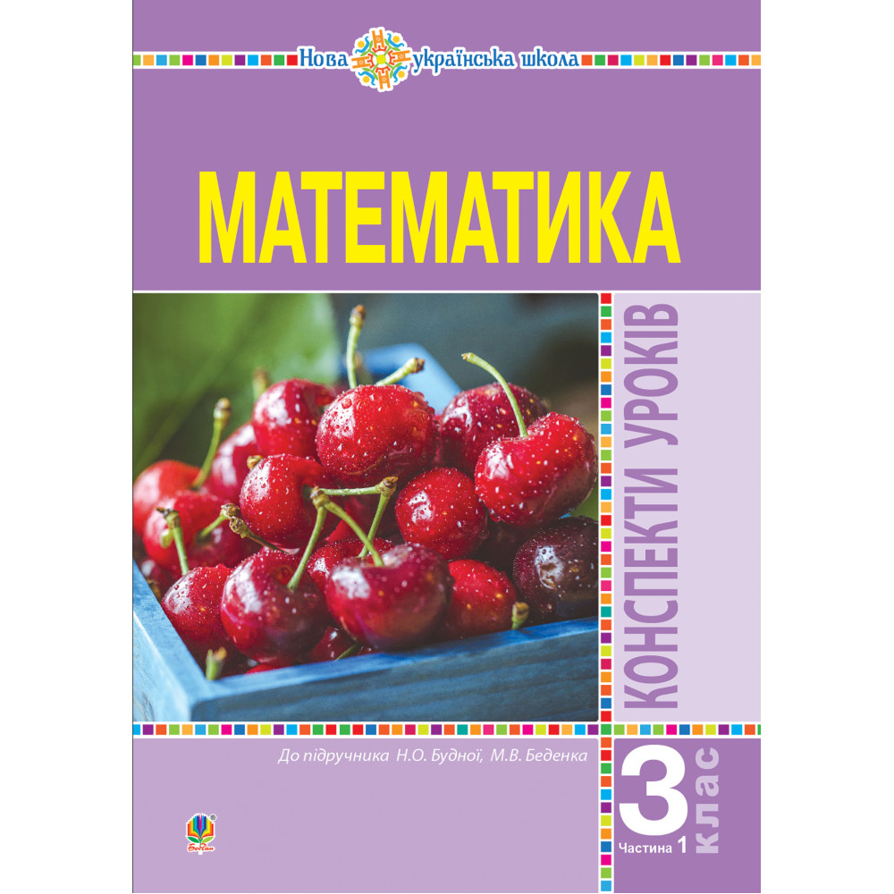 У посібнику подано розгорнуті конспекти уроків з математики, зміст яких відповідає Державному стандарту початкової освіти та Типовій освітній програмі, розробленій під керівництвом О. Я. Савченко. Пропонуються картки для опитування, цікаві завдання для усного рахунку, зразки бесід під час вивчення нового матеріалу, завдання ігрового і творчого характеру, різноманітні прийоми роботи над задачами, вправи логічного характеру тощо. Практичні завдання розглядаються на основі схем, таблиць, ілюстрацій. Матеріал посібника відповідає підручнику «Математика. 3 клас. Ч. 1» (авт. Будна Н. О., Беденко М. В. — Тернопіль: «Навчальна книга — Богдан», 2020 р.) та передбачає використання посібників «Математика. Робочий зошит. №1, №2. 3 клас — Тернопіль: «Навчальна книга — Богдан», 2020 р. (авт. Будна Н.О., Беденко М. В.).