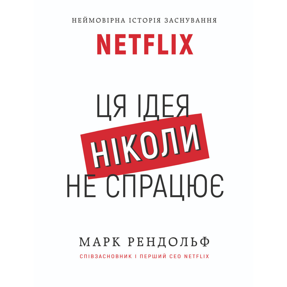 Книжка «NETFLIX. Ця ідея ніколи не спрацює» – це не покрові інструкції із створення успішного бізнес-проекту, хоч уважний читач знайде у книзі багато інсайтів. Це спогади Марка Рендольфа про зародження компанії і про те, як із нікому невідомого проекту Netflix стала компанією-гігантом.