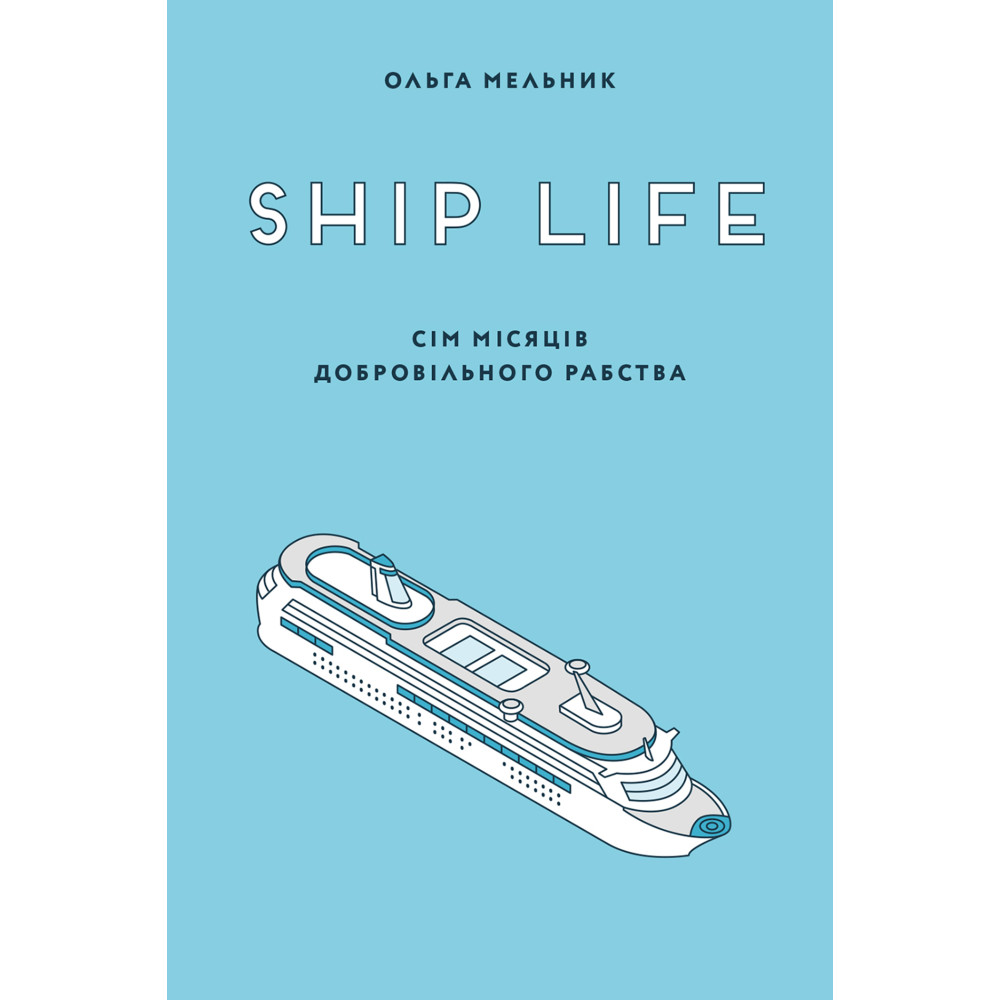 «Ship Life, або Сім місяців добровільного рабства» написано у формі умовного щоденника дівчини, що працювала офіціанткою на американському круїзному лайнері. Авторка день за днем відтворює з пам’яті реальні події семи місяців, проведених на борту, ділиться своїми враженнями, відкриттями і переживаннями. Читачі цього щоденника мають змогу разом з авторкою відвідати понад 20 країн Європи, Північної та Центральної Америки, а головне ‒ з перших вуст дізнатися про те, яке ж воно – корабельне життя.