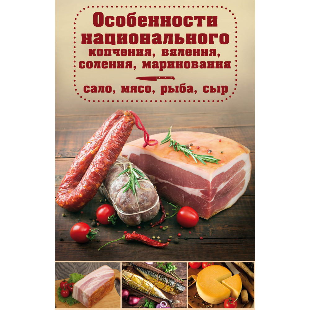 С этой книгой вы сможете приготовить восхитительный рулет по-австрийски, копченые свиные ребрышки с пряностями, баранину по-осетински, пикантную бастурму по-армянски, копченую рыбу по-фински, корейку по-испански, пряную «краковскую» колбаску, окорока и лопатки по-болгарски, копченую щуку пряную по-днепровски, подкопченный твердый сыр, сыровяленую свиную колбасу по-провански или вяленое филе скумбрии, сушеные соленые груши, землянично-медовую пастилу и многое другое. Также в книге подробно описана техника горячего и холодного копчения, особенности национального соления, вяления, маринования и консервирования различных видов мяса и рыбы, овощей и фруктов, алгоритм подготовки продуктов, советы по приготовлению домашней колбасы и выбору мясного сырья, подан перечень различных соусов, приправ, специй и маринадов.