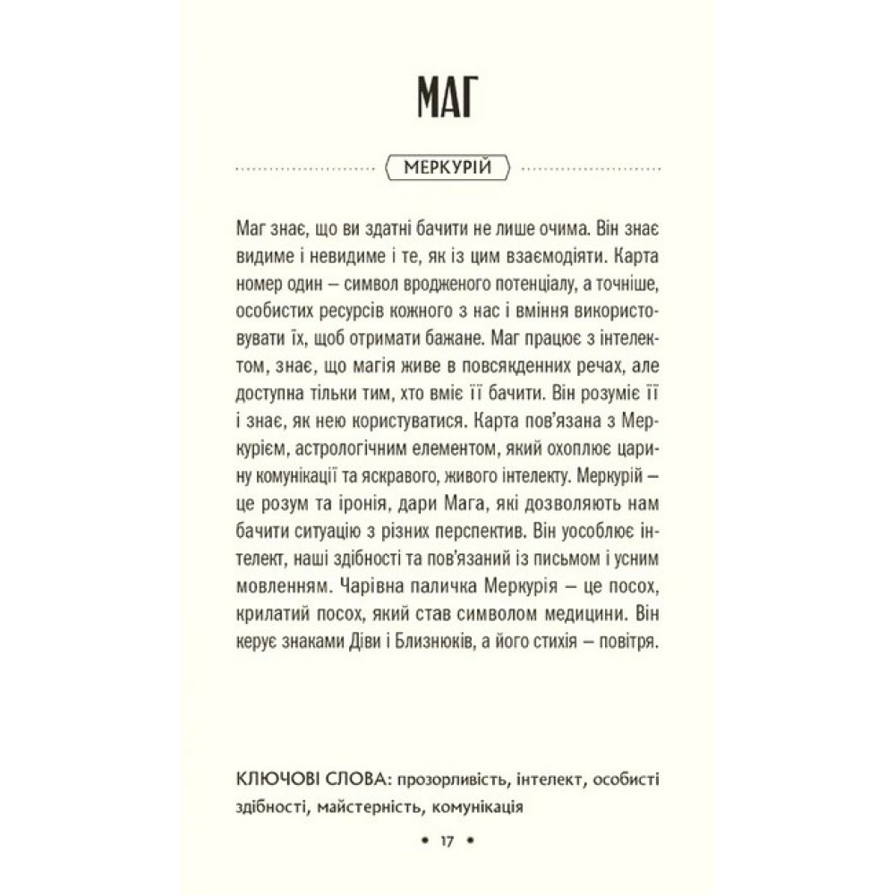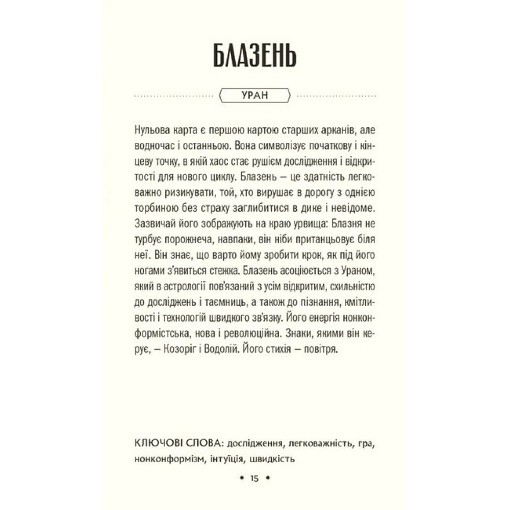 Зірки та їхній рух тісно пов’язані з життям на Землі. Ми походимо від зірок, і з незапам’ятних часів споглядання неба та руху планет допомагало краще зрозуміти людську природу. Ця колода проведе вас у світ астрології через давні традиції багатьох культур. Неймовірні історії, божества, персонажі, — відкривши таро, ви відкриєте для себе безліч образів для ворожіння.До набору входять:колода на 78 карт із матовою ламінацією та закругленими кутами;ілюстрований кольоровий посібник на 128 сторінок у форматі колоди;щільна коробка для зберігання набору.