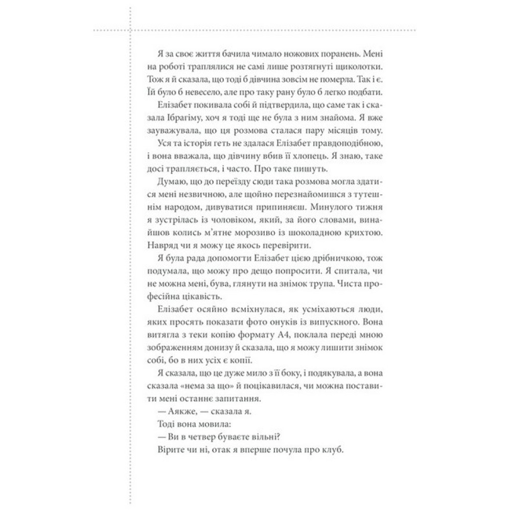 Маленьке, віддалене від гамірних мегаполісів містечко Куперс-Чейз — затишне поселення для шанованих пенсіонерів. Ані турбот, ані негод, суцільна ідилія. Щочетверга четверо стареньких збираються в кімнаті для відпочинку, щоб... обговорити старі нерозкриті вбивства, звісна річ. Принаймні так було доти, доки одного з місцевих не знайшли мертвим — і тепер «Клуб убивств по четвергах» починає своє перше справжнє розслідування. Поважний вік не має шансів проти їхнього завзяття, адже час копирсатися в старих могилах та проливати світло на чужих демонів! І хоча ніхто з детективів-аматорів цього поки не підозрює, та що глибше вони копатимуть, то більше витягуватимуть на поверхню власних таємниць.Про автора: Річард Осман — англійський телеведучий, продюсер, комік і письменник, творець і другий ведучий телевікторини Pointless на BBC One.