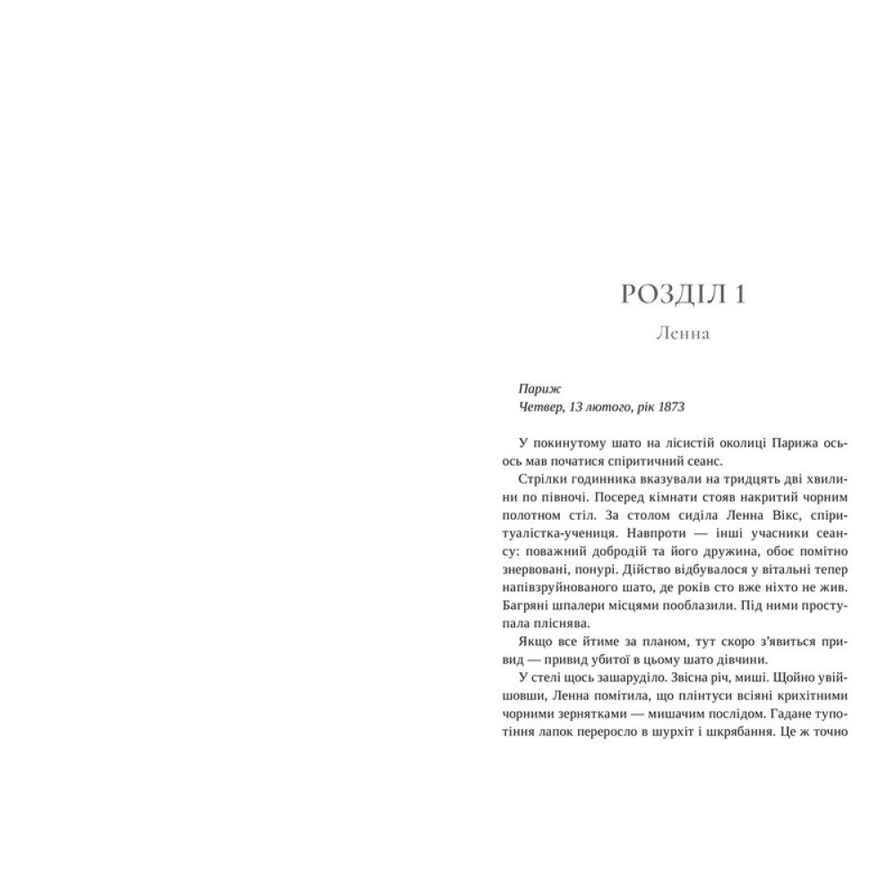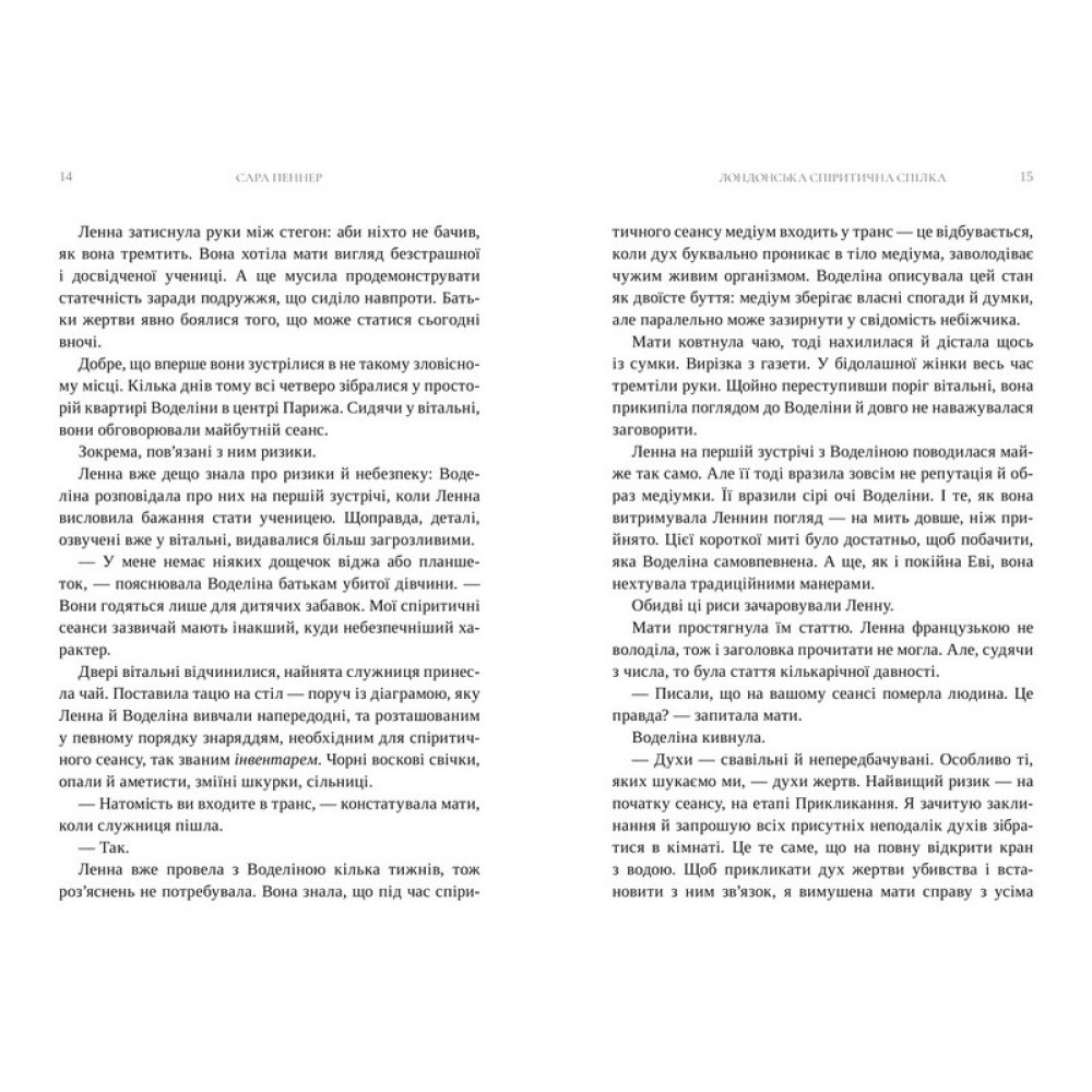 Увага! Продукція сексуального характеру або інша продукція з віковим обмеженням. Продаж неповнолітнім заборонено. Продаж відповідно до вікового обмеження.Нехай доля змилується над тим, хто став ворогом мстивій медіумці! Рік 1873, вікторіанська доба. У спробах знайти убивцю своєї молодшої сестри, Ленна, попри свій скептицизм, відправляється до відомої спіритуалістки Воделіни д’Аллер. Та пошук відповідей перериває резонансне вбивство, розкрити яке запрошують саме міс д’Аллер. Разом жінки вирушають до Лондонської спіритичної спілки, щоби з’ясувати обставини смерті одного з її членів. Під час розслідування героїні співпрацюють із впливовими представниками спілки, але з часом починають підозрювати, що ті й самі причетні до справи, яку хочуть розплутати. Чи зможе Ленна подолати свої упередження, щоби розгадати таємницю вбивства сестри? І чи підкажуть духи, як пов’язані її смерть з убивством одного з членів Спілки? Чому варто придбати: ·Авторка майстерно описує атмосферу, звичаї та манери Лондона ХІХ сторіччя та поєднує їх із досконалою містичною обстановою спіритичних сеансів. ·Напружена та сповнена таємниць історія покаже, що іноді людський скептицизм заважає нам розплющити очі й поглянути на правду. ·Оповідь Сари Пеннер досліджує розмиті межі між реальністю та ілюзією і показує, на що здатні жінки, які хочуть помститися за тих, кого люблять.