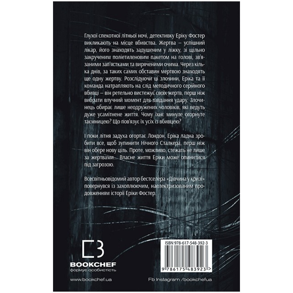 Глухої спекотної літньої ночі, детективку Еріку Фостер викликають на місце вбивства. Жертва — успішний лікар, його знаходять задушеним у ліжку, зі щільно закрученим поліетиленовим пакетом на голові, зв’язаними зап’ястками та виряченими очима. За кілька днів, за таких самих обставин мертвою знаходять ще одну жертву. Розслідуючи ці злочини, Еріка та її команда натрапляють на слід методичного серійного вбивці — він ретельно вистежує своїх жертв, перш ніж вибрати влучний момент для завдання удару. Злочинець обирає лише неодружених чоловіків, які ведуть дуже усамітнене життя. Чому їхнє минуле огорнуте таємницею? Що пов’язує їх усіх із вбивцею?