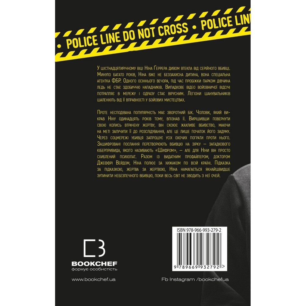 У шістнадцятирічному віці Ніна Ґеррера дивом втекла від серійного вбивці. Минуло багато років, Ніна вже не беззахисна дитина, вона спеціальна агентка ФБР. Одного осіннього вечора, під час пробіжки парком дівчина ледь не стає здобиччю нападників. Випадкове відео войовничої відсічі потрапляє в мережу і одразу стає вірусним. Легіони шанувальників шаленіють від її вправності у бойових мистецтвах. Проте несподівана популярність має зворотний бік. Чоловік, який викрав Ніну одинадцять років тому, впізнав її. Вирішивши повернути свою колись втрачену жертву, він скоює жахливе вбивство, маючи на меті залучити її до розслідування, але це лише початок його задуму. Через соцмережі убивця запрошує усіх охочих пограти проти нього. Зашифровані послання перетворюють вбивцю на зірку — загадкового кіберпривида, якого називають «Шифром», - але для Ніни він просто схиблений психопат. Разом із видатним профайлером, доктором Джеффрі Вейдом, Ніна полює за хижаком по всій країні. Підказка за підказкою, жертва за жертвою, Ніна намагається якнайшвидше зупинити небезпечного вбивцю, поки весь світ не зводить з неї очей.