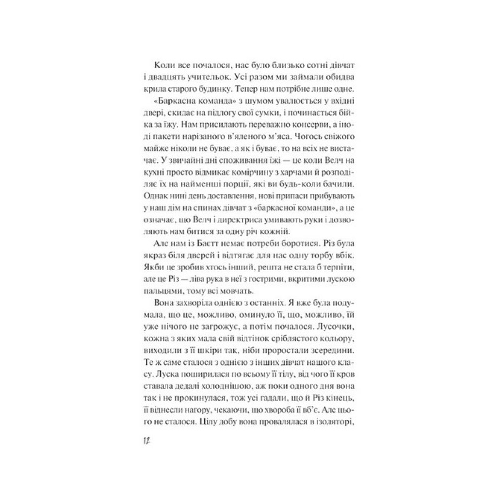 Півтора року очікування ліків у зачиненій на карантин школі… Спочатку одна по одній помирають учительки, а тоді щось починає відбуватися з ученицями: під дією токсу дівочі тіла стають дивними й чужорідними. Три найкращі подруги відрізані від решти світу на острові. За огорожею — дикий і небезпечний ліс. І віднедавна там блукає одна з них…Книга «Дикі дівчата» — це боді-горор від американської письменниці Рорі Павер. Око Гетті неживе, воно назавжди заплющилося через раптове ураження інфекцією. Дівчина відчуває під повікою біль: там щось ворушиться. Однак вона звикла до страждань, а її втрата не така серйозна, як в інших дівчат. Хтось залишився без нормальних кінцівок, а хтось — без життя. Після введення карантину не знайти жодної учениці школи «Ракстер», яка б не була травмована фізично, чи морально. Гетті разом зі своїми подругами повинна вижити й дочекатися ліків проти таємничої хвороби.