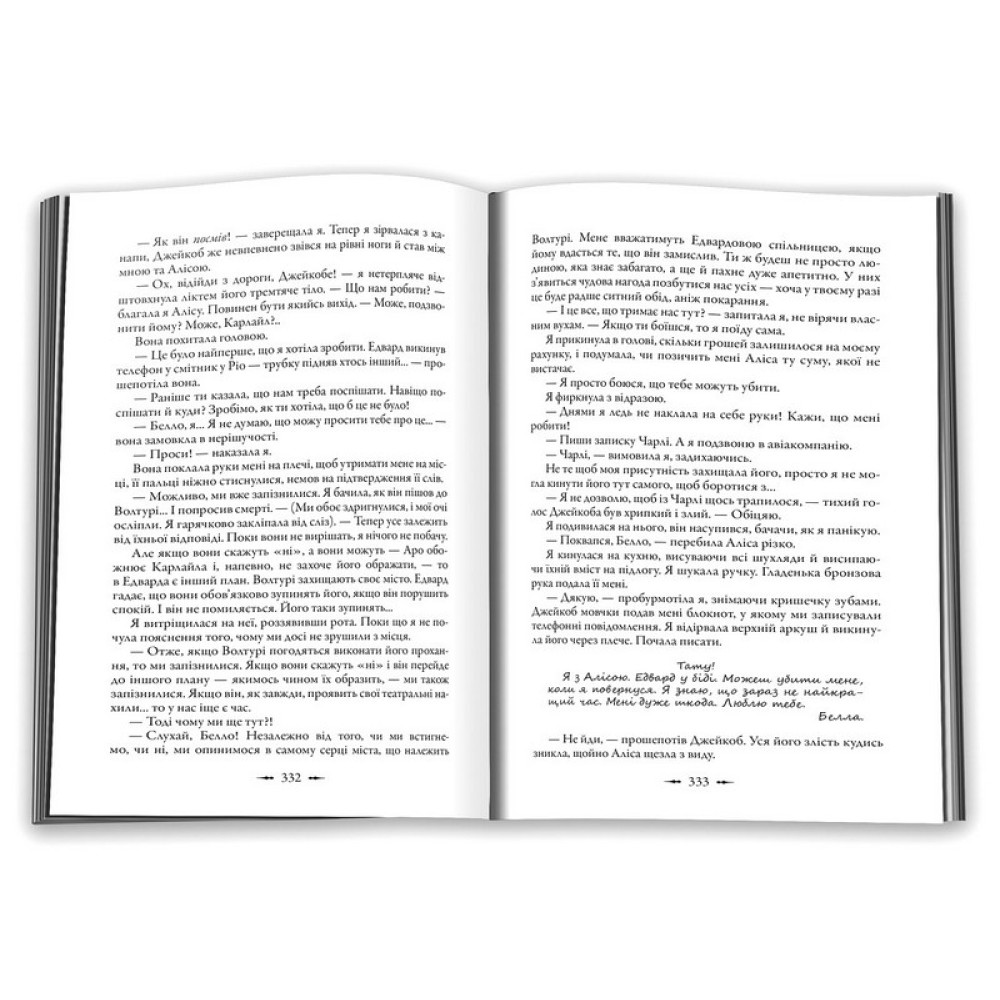 Для Белли Свон є лишень одна річ, важливіша за власне життя: Едвард Каллен. Але кохати вампіра — набагато небезпечніше, ніж вона могла собі уявити. Едвард уже одного разу рятував її зі смертельних обіймів вурдалака-чужака, та коли власна Едвардова родина стає для Белли загрозою, він усвідомлює, що закохані перетнули межу. І вирішує зупинитися, перш ніж буде запізно. От тільки він не здогадується, що таким чином збільшує ризик, який нависнув над коханою Беллою...