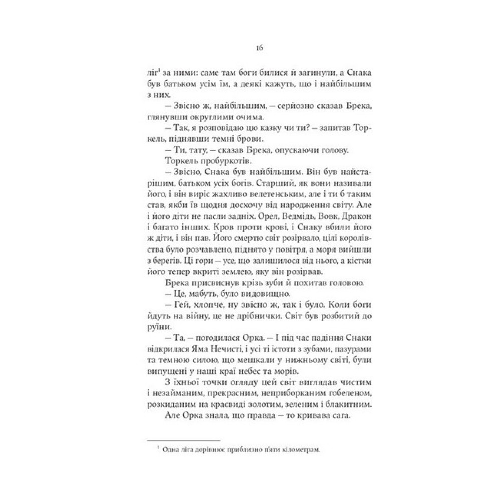 Тінь богів — перша книга трилогії, сповнена вражаюче деталізованих батальних сцен і наскрізь просякнена скандинавським духом, знайомить нас із хитросплетінням сюжетних ліній, що в подальшому ляжуть вигадливим візерунком на епічну основу саги.У світі, що зумів пережити Раґнарьок, і повстав після падіння богів, відбувається щось дивне. Епоха миру уже не здається багатьом настільки спокійною: серед дрібних правителів назрівають міжусобні війни, від чого мешканці Віґріду, Поля бою, геть не в захваті. Герої саги: мисливиця Орка, що відлюдно живе з чоловіком та сином у господі серед лісів, Варґ — раб-утікач, який шукає помсти за свою сестру, та Елвар — молода амбітна воїтелька, долають труднощі їхнього жорстокого світу, зустрічаються із ворогами, подекуди спільними, знаходять та втрачають друзів, щоб зрештою зрозуміти, що боротьба за панування у Віґріді ведеться не лише серед людей.