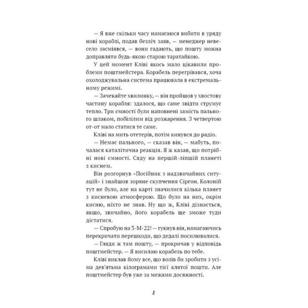 Твори Роберта Шеклі вже давно зажили слави класики світової фантастики. Неповторний авторський стиль, сповнений блискучого гумору, яким американський фантаст описує важливі для всього людства проблеми, прагнення до змін і спрямованість у майбутнє, не залишає байдужим жодного читача, примушуючи з часом знову і знову повертатися до його творів, перечитувати і відшуковувати нові грані та прихований зміст. Оповідання, що увійшли у цю збірку, є одними з найвизначніших у творчому доробку Роберта Шеклі і допоможуть юному читачеві прочинити завісу до фантастичного світу космічних пригод, лишивши назавжди закоханість у таємні глибини космосу.