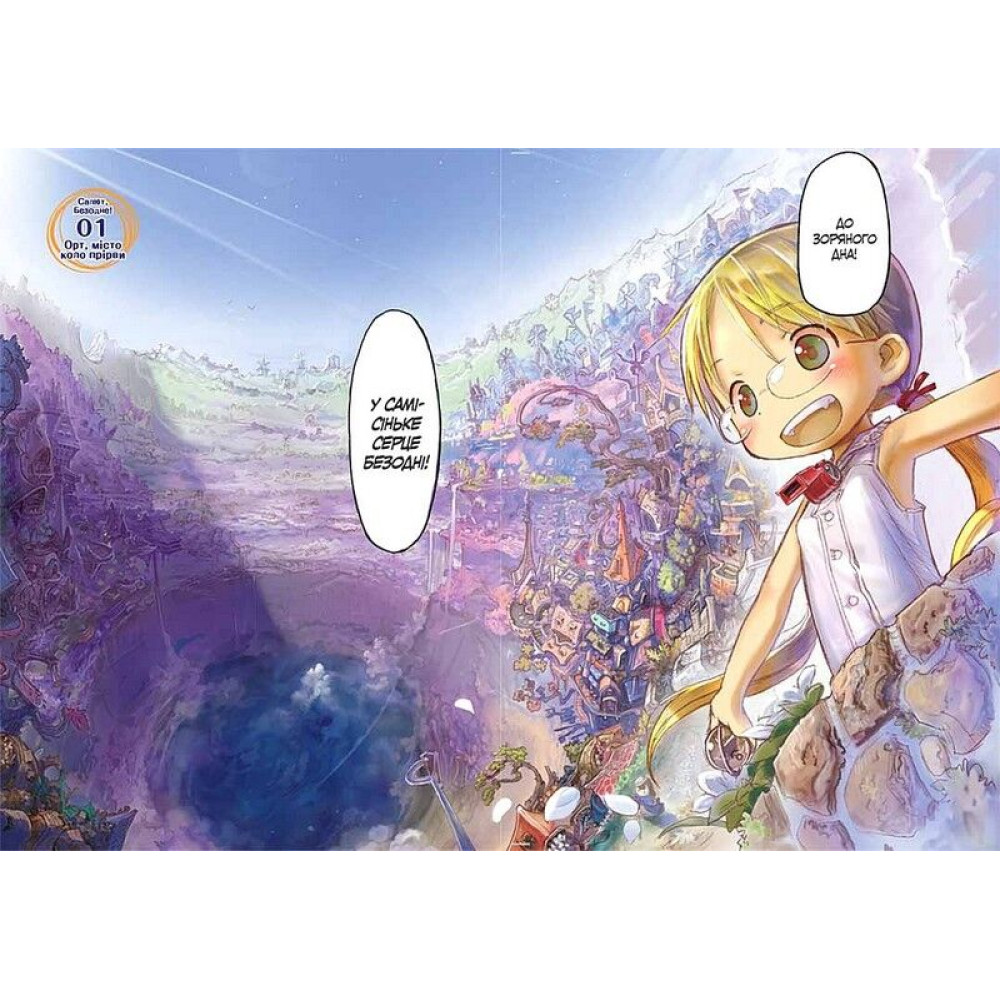 Увага! Продукція сексуального характеру або інша продукція з віковим обмеженням. Продаж неповнолітнім заборонено. Продаж відповідно до вікового обмеження.У цьому світі не так багато недосліджених куточків. Здається, вже все давно відкрили. Тільки не її… лабіринт печер, який називається Безодня. Величезна вирва, вертикальний колодязь, повний скарбів та невідомих істот. Ніхто не знає, звідки взялася Безодня, ніхто не може пояснити, чому вона саме така.Тих, кому вдається долати нескінченні проходи і провали печерного лабіринту, називаються глибинологами.Сирота Ріко теж мріє стати однією з них, адже саме такою була її матір. Їй ще бракує вмінь, але звістка від матусі, яка десь глибоко в Безодні, мотивує дівчину запекло тренуватися. Бо інакше вони більше ніколи не побачаться… Тож, коли одного разу біля краю провалля Ріко зустрічає дивного робота, надзвичайно схожого на людину, вона розуміє, що стала на крок ближче до досягнення мети.