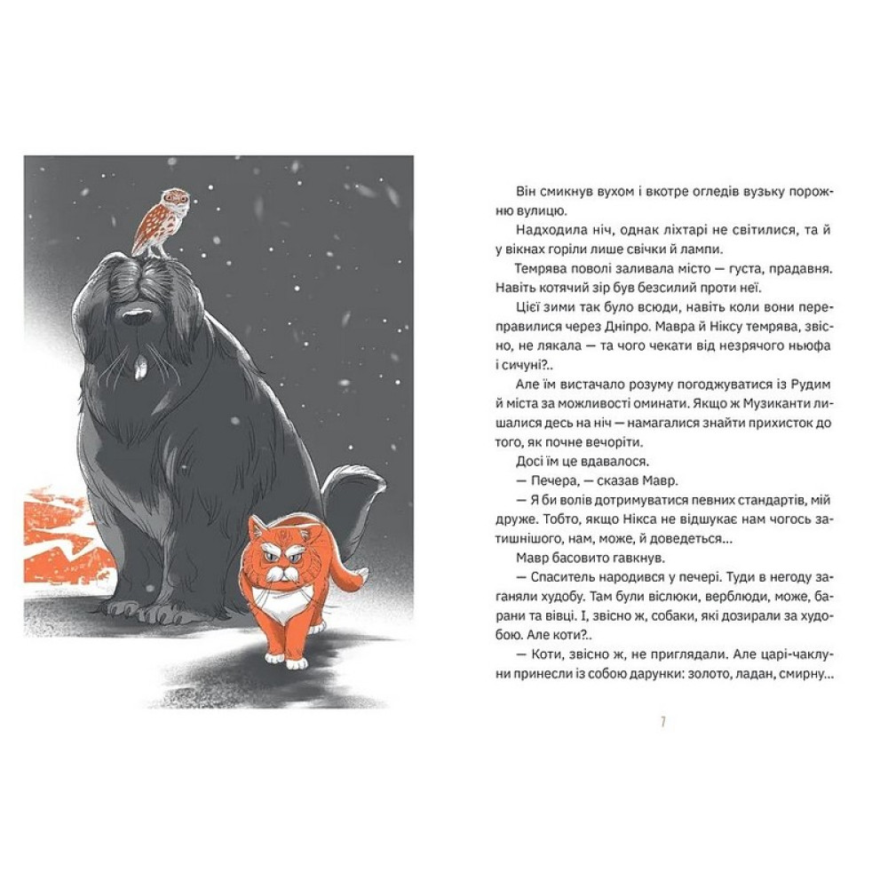 Вони приходять, коли на них не чекають. Деякі кажуть, зустріти їх — на щастя. Інші радять уникати будь-яких контактів із цими трьома. Повнуватий рудий кіт. Чорний незрячий ньюфаундленд. Крихітна сова, яка майже ніколи не спить.Чому їх називають Музикантами? Що змушує цих трьох мандрувати разом? Куди вони прямують? Невідомо! Але сюжети давніх українських легенд і казок оживають навколо них — і оповідають про те, що стосується кожного з нас тут і зараз.Цього разу Музиканти отримують вигідну пропозицію: перебути у теплі та затишку найдовшу і найнебезпечнішу ніч року. А водночас — побути на чатах у одному дуже особливому місці. Здавалося б, що може піти не так?..