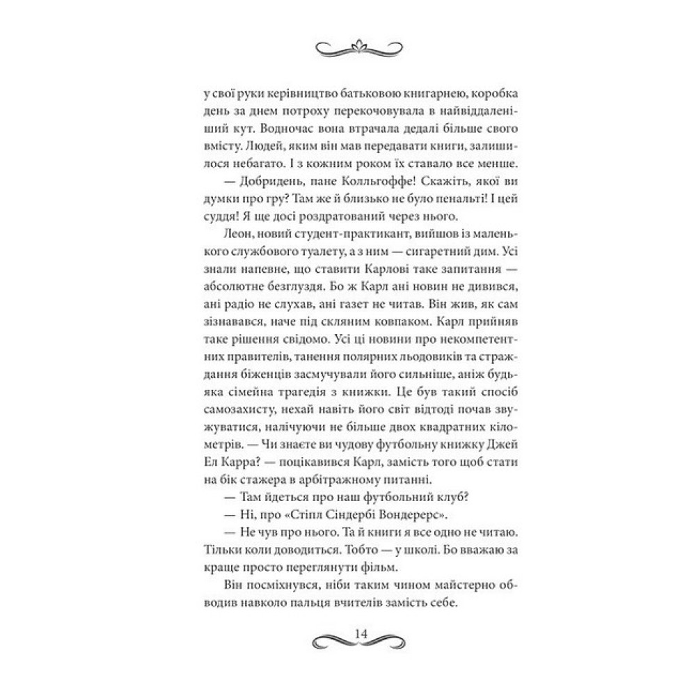 ІСТОРІЯ ПРО КНИЖКИ, ЯКІ ПОЄДНУЮТЬ ДУШІ Карл, 72-річний книгар, щовечора обходить район, доставляючи книжки своїм особливим читачам. Він уважно добирає ідеальні історії, які втішають і дарують радість. Одного вечора, під час своєї звичної прогулянки, Карл зустрічає дев’ятирічну Шашу. Ця енергійна дівчинка в жовтому дощовику наполегливо просить приєднатися до нього і навіть намагається поділитися своїми знаннями про книги. Коли ж робота Карла в книгарні опиняється під загрозою, саме Шаша береться допомогти йому відновити гармонію в житті. Двоє випадкових перехожих, яких поєднала зворушлива дружба, намагаються разом повернути магію читання до свого маленького містечка. Про автора: Карстен Генн - письменник, журналіст та ресторанний критик. Він написав багато успішних кулінарних детективів, романтичних комедій, п’єс, а також видав дитячу книжку. Роман "Книгоходець" перебував у списку бестселерів Spiegel понад два роки. Книжку переклали 30 мовами й екранізували.
