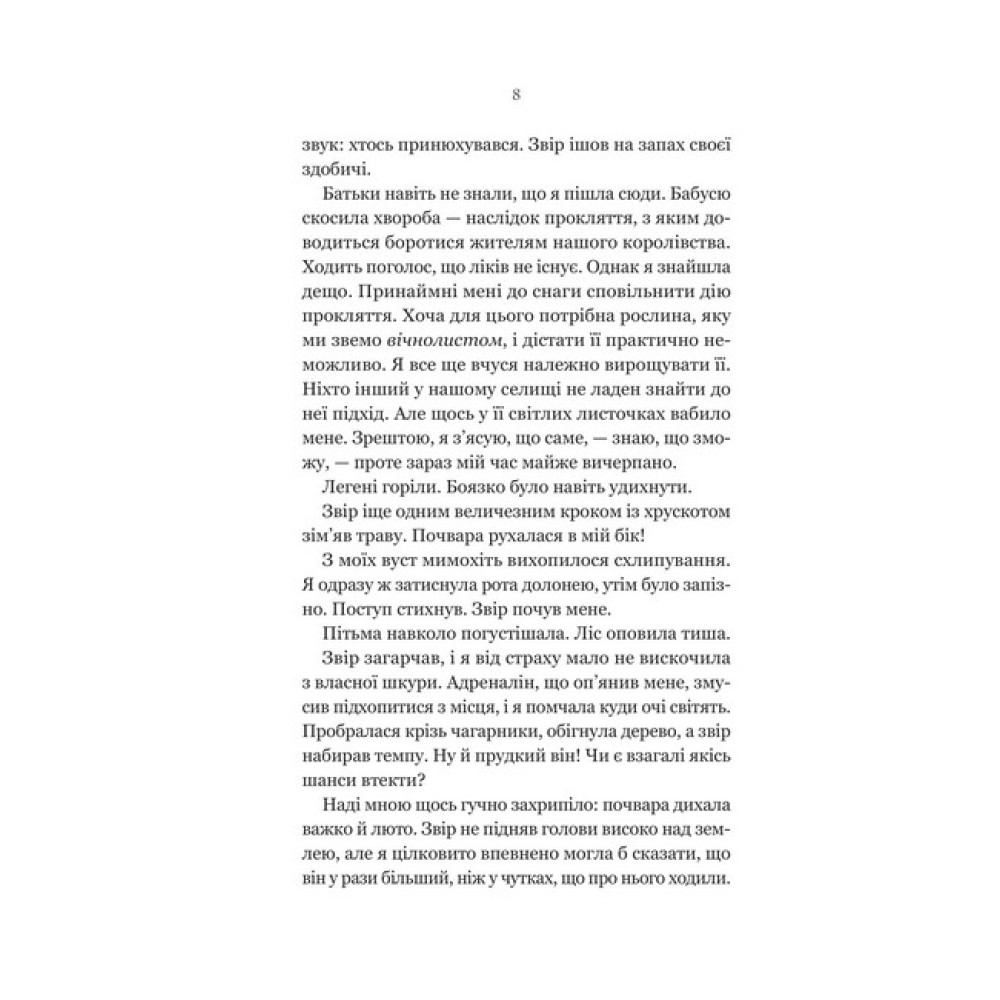 Фінлі зі своєю сім’єю живе в селищі на краю зачарованого королівства. Його підданих поступово накриває хвороба, ліків проти якої не існує... Майже. Фінлі винайшла спосіб урятувати батька. Для цього потрібно вночі зібрати вічнолист, який росте тільки в Забороненому лісі. Лише ця рослина може сповільнити дію прокляття. Дівчина навчилася майстерно робити з неї трунки, однак щоб зібрати бодай трохи вічнолисту, потрібно порушити закон. Підданим королівства суворо заборонено навідуватися туди, чаклувати й обертатися на тварин, як колись. І все через угоду між покійним королем і демоном.
