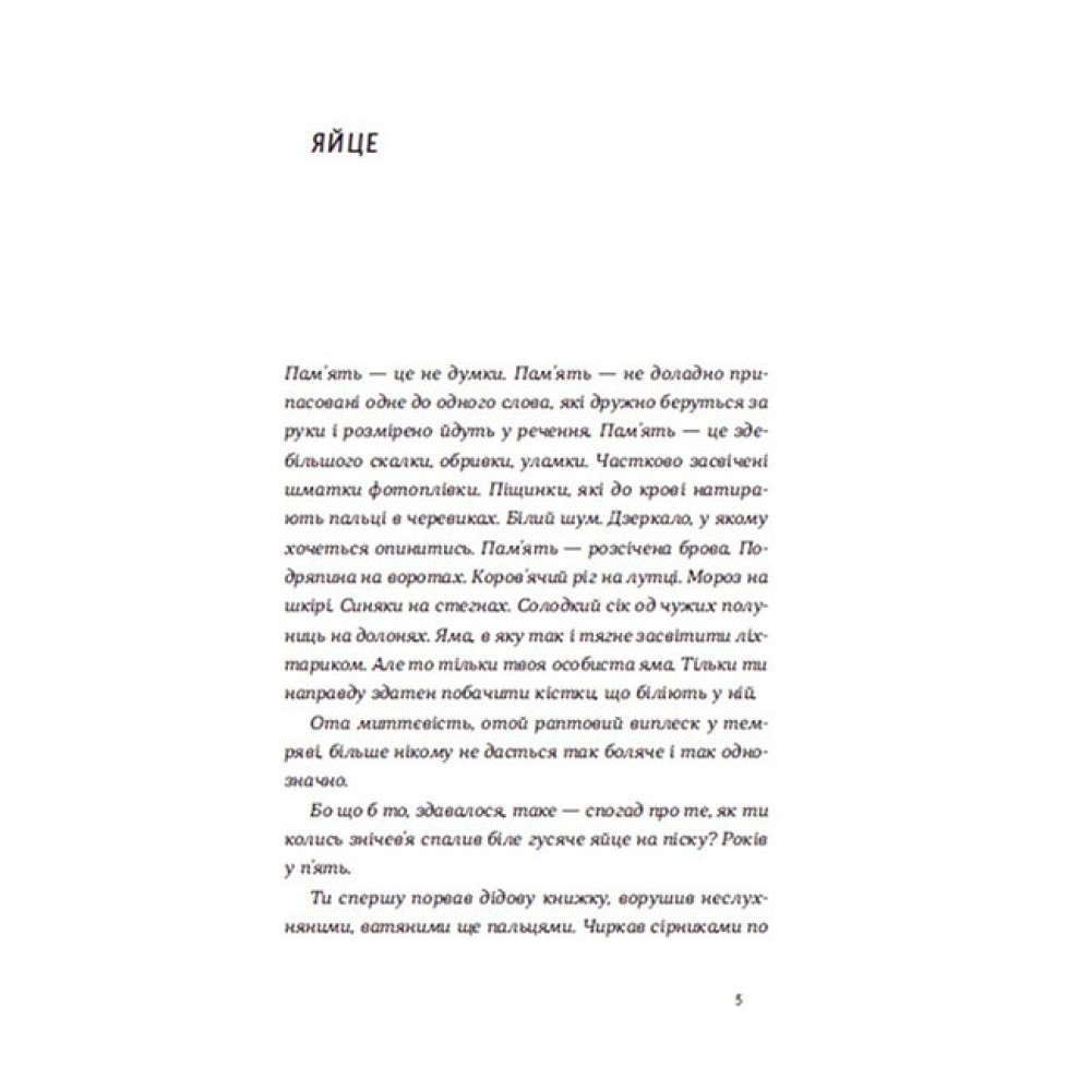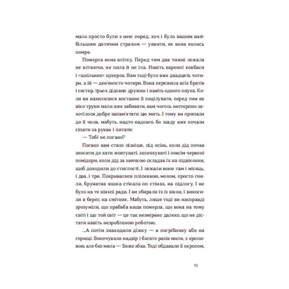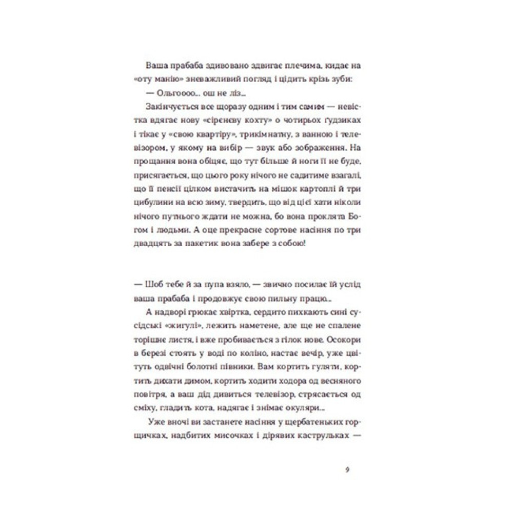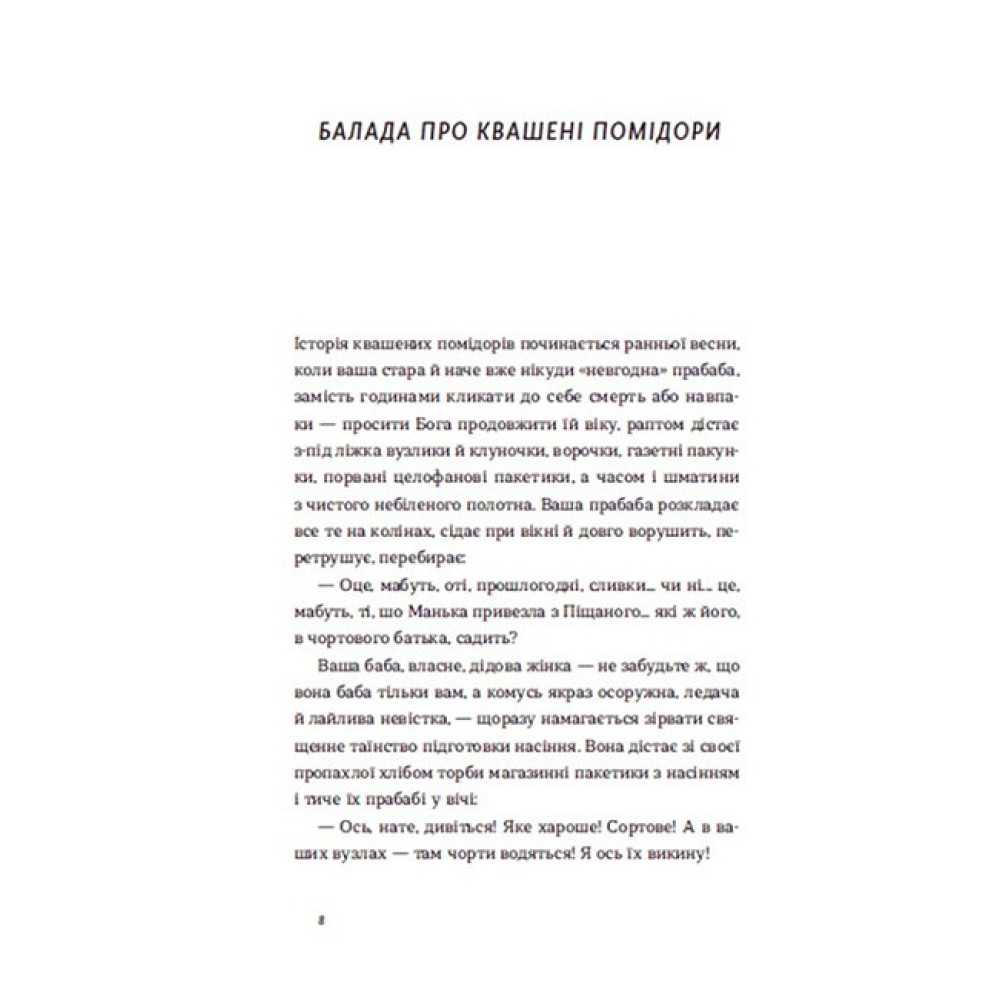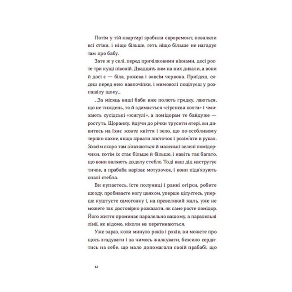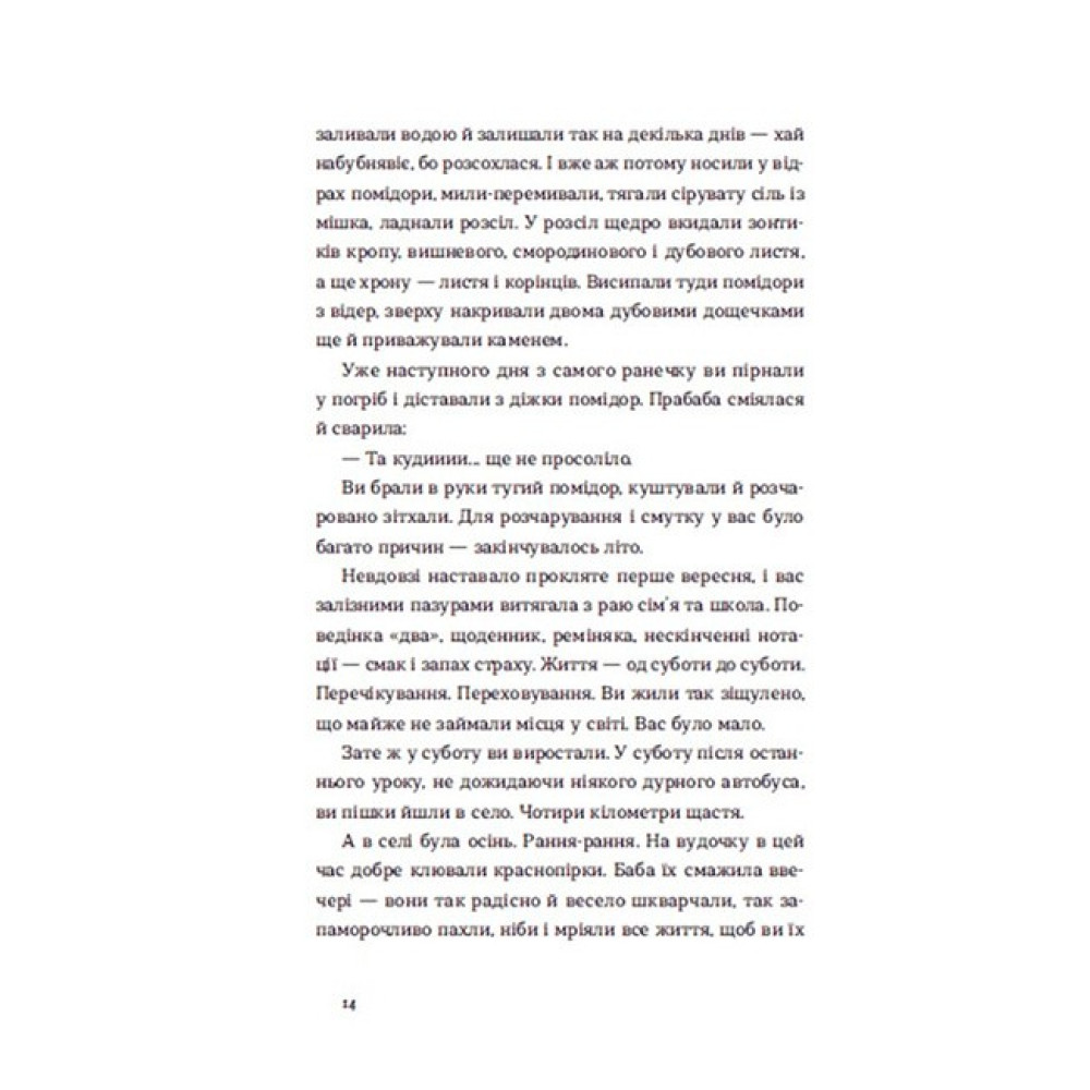 Ця книжка — найпереконливіший доказ, що всі ми таки родом з дитинства. У новелах та образках Сергія Осоки — анатомія дитячої душі, яку препарує душа доросла, що дорослою остаточно не стала, та не дуже й хоче. Звідси — гранична, ба — навіть позагранична, щирість. Читач вірить оповідачеві беззастережно — як чорно-білій світлині з власного дитинства. Бо всі ці на позір звичайні, традиційні, побутові сюжети, долі й почуття дорослих — рідних, односельців та «чужаків», до яких дотикається дитяча чутливість, — це про кожного. І до кожного, хто пам’ятає й береже в собі Дитину — з її відкриттями й зачудуванням світом, з її гострим болем та розчаруваннями, з її первинною любов’ю до життя і людей.