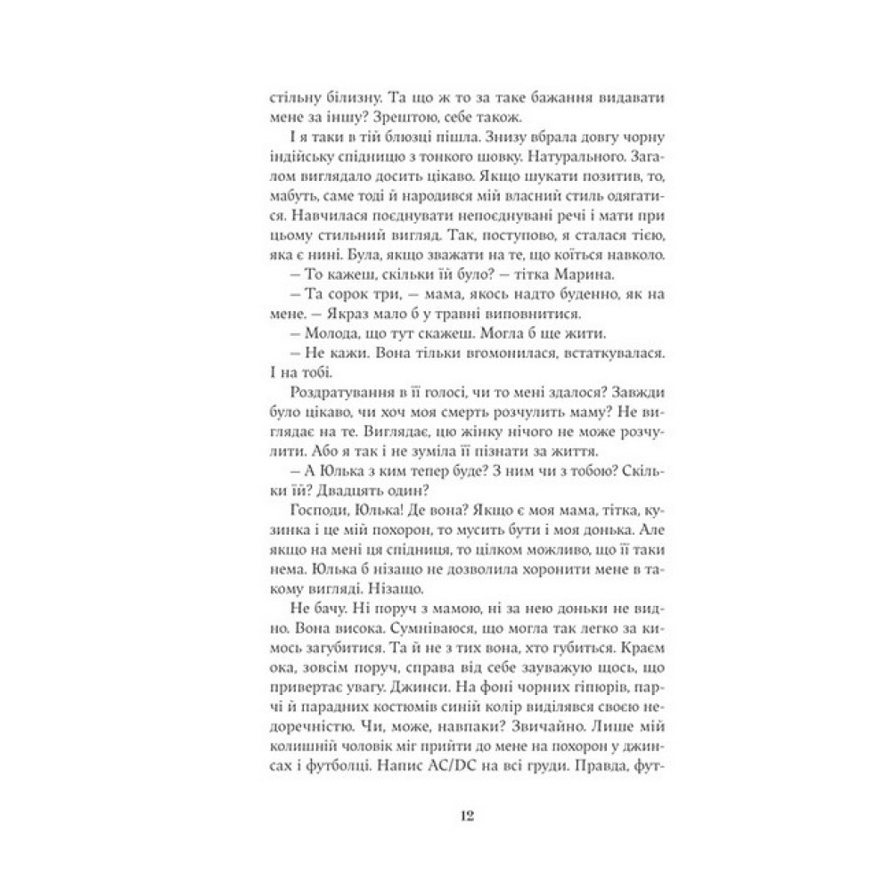 Роман «Насіння кмину» — це історія про пошуки себе і сміливість бути чесною із собою. Одного дня тобі приходить повідомлення в месенджер від незнайомого чоловіка, і твій світ миттєво перевертається з ніг на голову. Виявляється, ти знала його й заглядалася ще підліткою, коли ви чекали автобус. Лише ніколи не наважувалася заговорити. А що, коли в розмові з тепер не таким уже й незнайомим чоловіком ти дізнаєшся щось особливе? Правду про себе, наприклад. Тепер постає єдине питання: що з тією правдою робити? Готового рецепту бути собою не існує. А якщо додати дрібку солі, менше цукру, насіння кмину? Чи вистачить героїні сміливості пробувати, помилятись, шукати далі, аби повернути в життя надію, зробити його чесним, насиченим, справжнім?В есе авторка розмірковує над темами, що близькі багатьом жінкам: усвідомлення й пошуки себе справжньої, власні кордони, ставлення до чоловіків, до світу, до себе. Як прийняти себе такою, яка ти є? Чи можна певний досвід прожити й відпустити? Цю книжку варто прочитати, аби дізнатися, як любити різну себе.