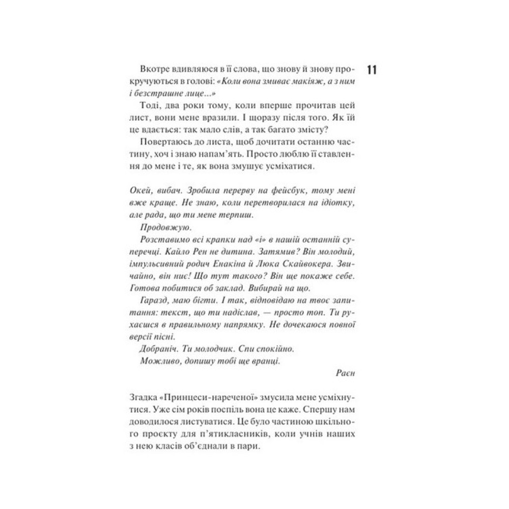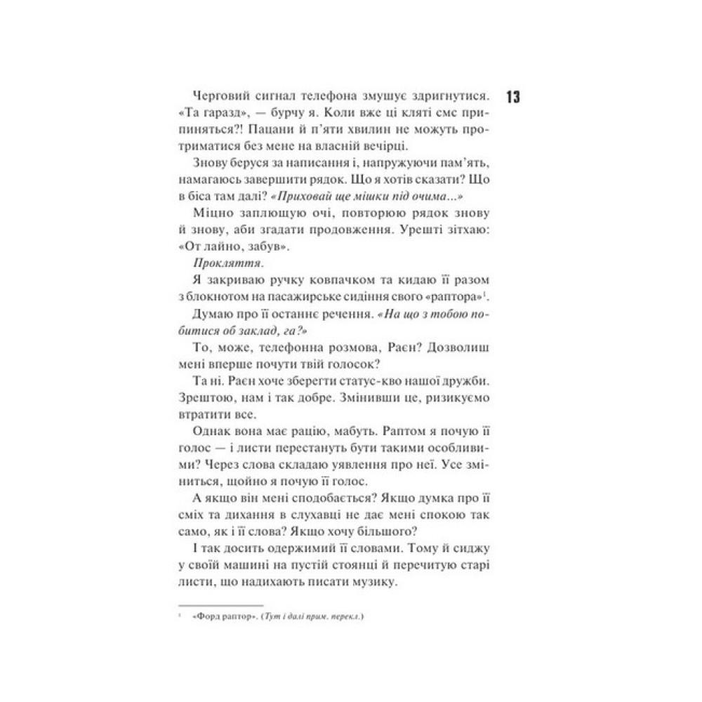 Увага! Продукція сексуального характеру або інша продукція з віковим обмеженням. Продаж неповнолітнім заборонено. Продаж відповідно до вікового обмеження.У п’ятому класі вчителі випадково поставили Мішу і Раєн у пару для листування. Їх розділяли десятки кілометрів, але об’єднували спільні думки і захоплення. Тільки одне з одним вони могли бути по-справжньому відвертими та щирими. Ці листи тримали їх на плаву в найтяжчі моменти дорослішання. Довгі сім років у їхньої дружби було лише три правила: не шукати одне одного в соцмережах, жодних телефонних дзвінків, жодних фотографій.Проте одного дня Міша вирішив порушити домовленість і побачити Раєн... Це була ненависть із першого погляду! Але Раєн навіть не здогадувалася, що перед нею Міша, її Міша. Дівчина не розуміє, чому більше не отримує листів від нього, чому він зник з її життя. Однак вона готова на все, аби повернути друга!
