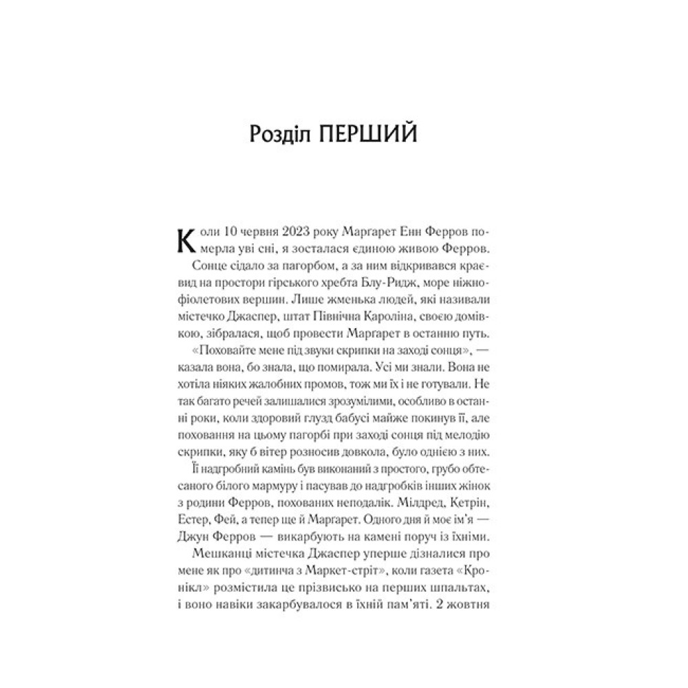 Джун Ферров із маленького гірського містечка Джаспер у штаті Північна Кароліна чекає на свою долю. Жінки роду Ферров славляться квітковою фермою і таємничим прокляттям, яке переслідує їх. Божевілля спіткало всіх жінок у цій родині, скільки їх пам’ятали. Так одного дня Сюзанна Ферров зникла, а маленька Джун залишилася з бабусею. Рік тому дівчина почала бачити й чути нетутешні речі: таємничі двері, що з’являються нізвідки, слабкий шум вітру, голос, що кличе її на ім’я. Вона завжди знала, що має статися. «Воно прийшло по мою бабусю, мою маму, а тепер і по мене». Після смерті бабусі Джун знаходить загадкові підказки про те, куди зникла її мати. Минуло кілька десятиліть, тож питань більше, ніж відповідей. Чи можуть двері, які вона колись вважала марою, бути відповіддю, яку вона так довго шукала? Коли вони з’являються наступного разу, Джун зважується переступити поріг і вирушає в подорож, що змінить її минуле й майбутнє.