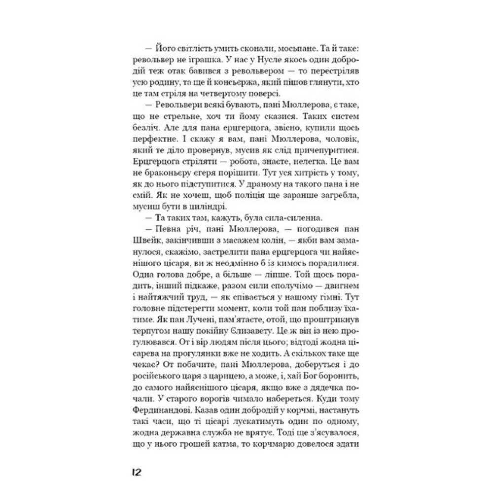 Ярослав Гашек (1883-1923) — чеський письменник-сатирик, журналіст. Найвідоміший його роман «Пригоди завзятого солдата Швейка» — незавершена колекція фарсових розповідей про походеньки солдата часів Першої світової війни, сповнена сатиричними замальовками про бездарність і недолугість можновладців та військових чинів. Роман перекладено близько 60 мовами, що робить його твором чеської літератури, який перекладали найчастіше.Медкомісія визнала Йосифа Швейка дурнем, та попри це йому надсилають повістку, тож він мусить збиратися до війська. Швейк не надто журиться, що має відбути службу, адже матінка Австрія кличе добросердого чеха захищати її.Затишна атмосфера чеських пивниць початку ХХ ст., мандри великою імперією у складі військових ешелонів, служба чурою в польового курата Отто Кацта, який полюбляє оковиту, й у надпоручника-бабія Лукаша, російський полон і визволення з нього — це та багато інших кумедних і потішних пригод трапляється із Йосифом Швейком, цим дотепним і гострим на язик чоловікомм. А ще він і сам розповідає чимало цікавезних бувальщин і трапунків зі свого життя.