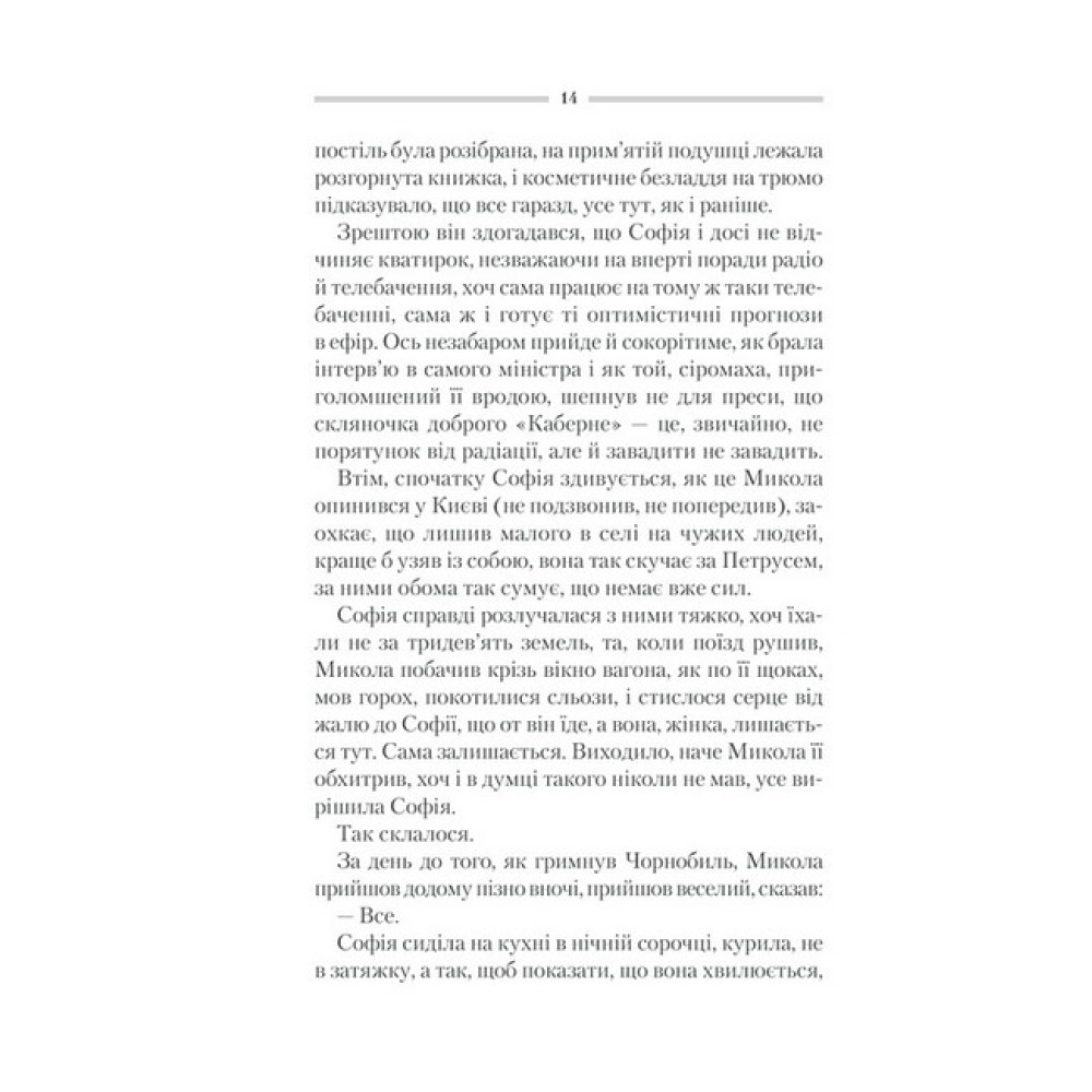 Перевидання тужливої «Ностальгії».У годину зневіри і краху надій мусиш зупинитися в пошуках точки опертя. За день до Чорнобильської катастрофи він звільнився з роботи і став непідлеглим митцем. Та чи можна звільнитися від свого минулого? Втекти від втраченого кохання, самотності й фатальних життєвих обставин? На цьому шляху він зустрічає незвичайну жінку, здатну зцілити душу й повернути жагу до життя. Але жереб знову кидає той-таки фатум.Про автора:Василь Шкляр — один з найвідоміших письменників сучасної України. Кожна його книжка стає бестселером. Успіх романів Шкляра приголомшливий: відзнаки, премії, гран-прі, постійні перевидання, переклади іноземними мовами. Він є лауреатом багатьох літературних премій, але найдорожча з них — народна Шевченківська, яку автор отримав після того, як 2011 року відмовився прийняти з рук антиукраїнської влади присуджену йому Національну премію імені Тараса Шевченка. З культового «Чорного Ворона» («Залишенця») розпочалася давно очікувана екранізація романів «батька українського бестселера».