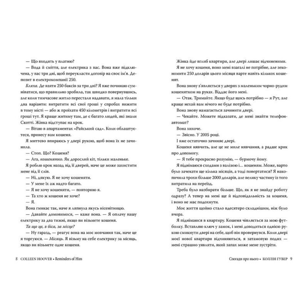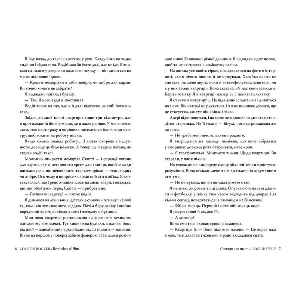 Відсидівши п’ять років у в’язниці за трагічну помилку, Кенна Ровен повертається в місто, де все й полетіло шкереберть, — і сподівається знову стати частиною життя своєї чотирирічної доньки. Однак відбудувати спалені мости Кенні не до снаги. Опікуни її доньки щосили пнуться не допустити Кенну до дівчинки. Єдиний, хто не закриває перед нею дверей — Леджер Ворд, власник місцевого бару. Він — одна з небагатьох ниточок, що веде до доньки Кенни… Між Леджером і Кенною спалахують почуття, та що сильніше вони розгораються, то більшають ризики: ніхто не має дізнатися про їхній зв’язок, адже надто багато стоїть на кону. Кенна мусить здобути прощення за минулі помилки, ставши на шлях зцілення і надії…«Спогади про нього» від авторки бестселерів Коллін Гувер — відверта історія про вибір, відповідальність і любов, що долає всі перешкоди.